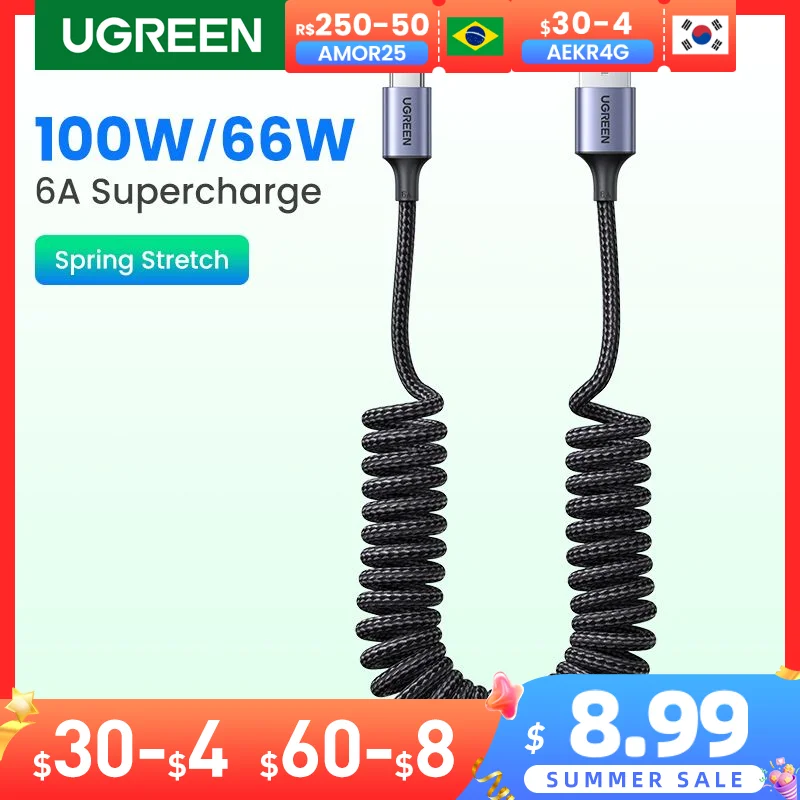 Comprar UGREEN-Cable USB tipo C de 6A y 100W para móvil, cargador de coche telescópico de carga rápida para Huawei Honor y Xiaomi 100W/66W
