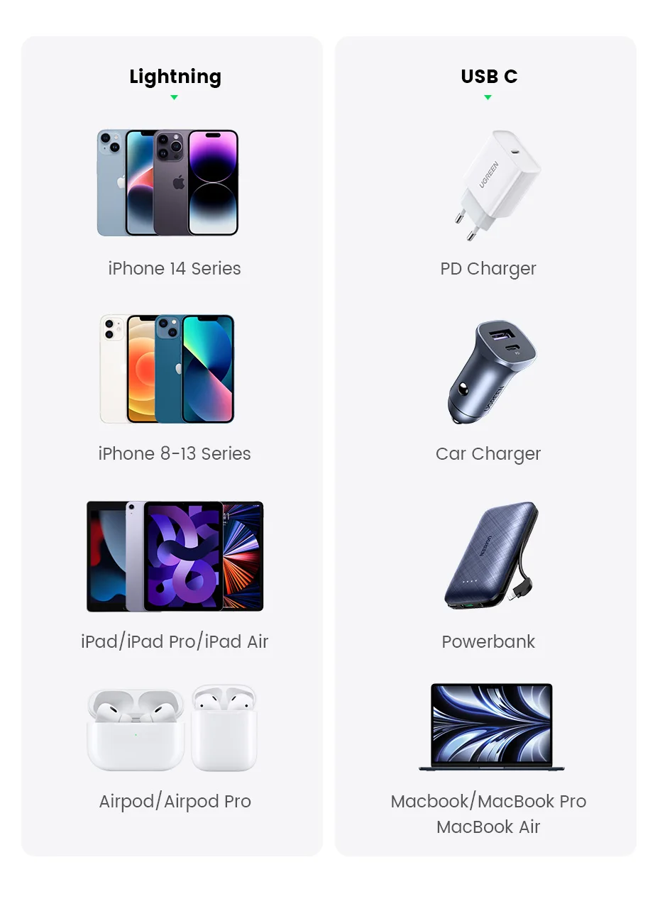 Comprar UGREEN-Cable USB tipo C a Lightning para iPhone 14, 13, 12 Pro Max, carga rápida para iPad Mini