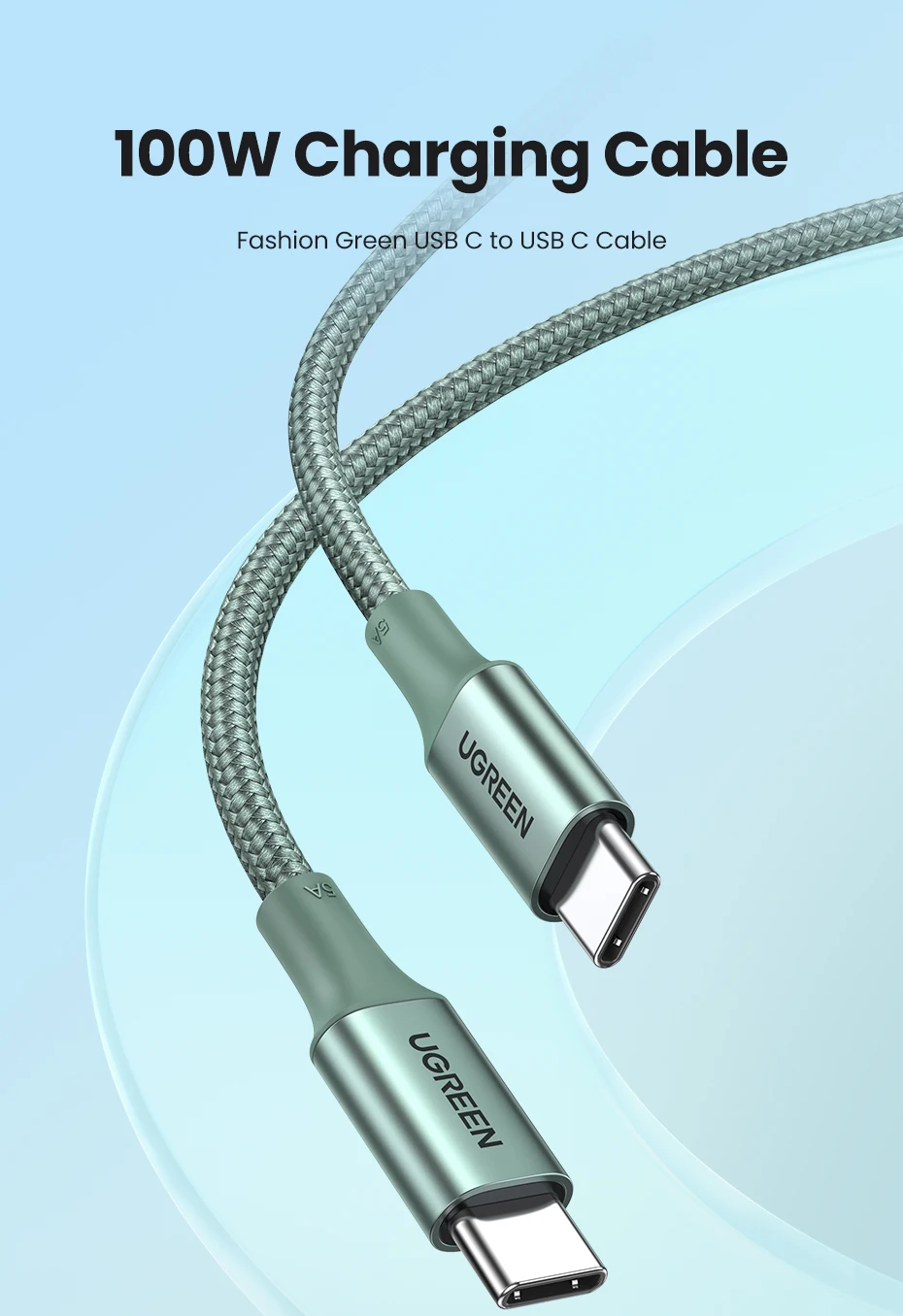 Comprar Ugreen-Cable USB tipo C a tipo C para MacBook, Samsung, PD100W, Cable de carga rápida QC4.0
