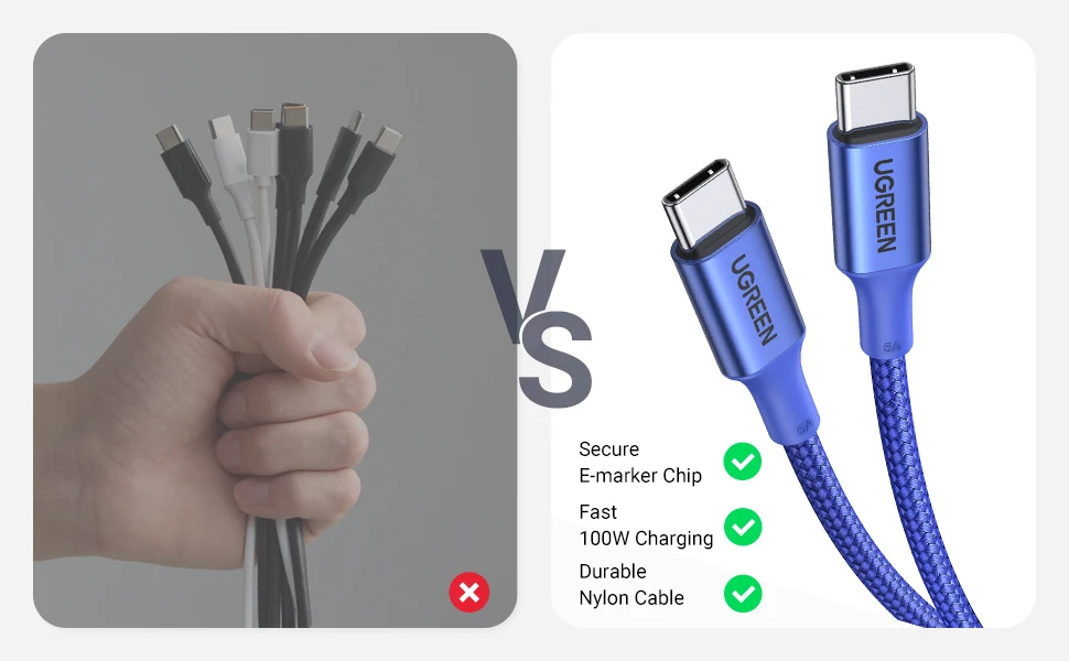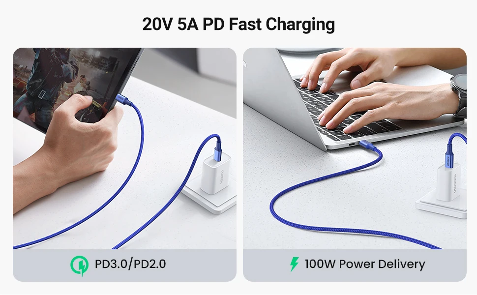 Comprar Ugreen-Cable USB tipo C a tipo C para MacBook, Samsung, PD100W, Cable de carga rápida QC4.0