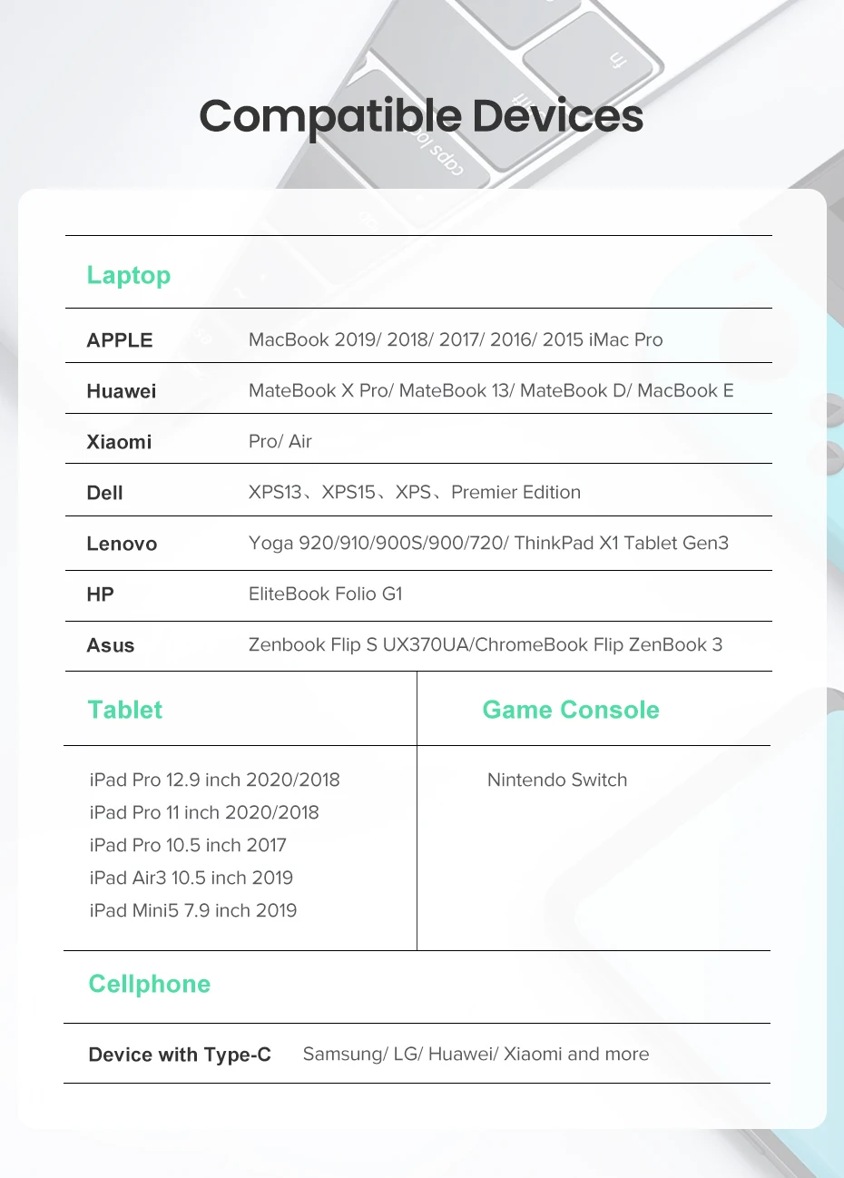1.PD100W: admite carga rápida 4,0/3,0 20V/5A