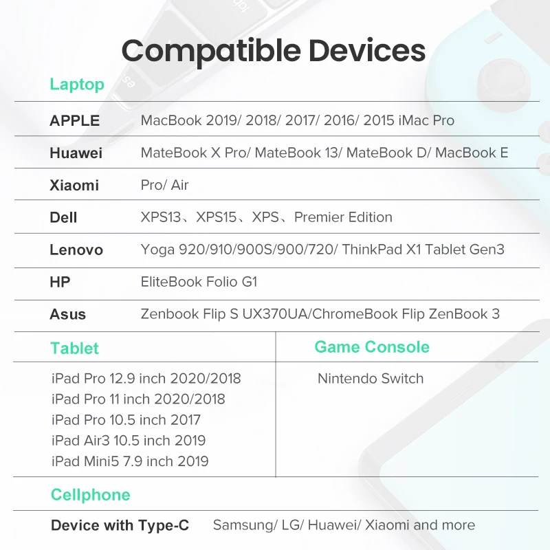 1.PD100W: admite carga rápida 4,0/3,0 20V/5A