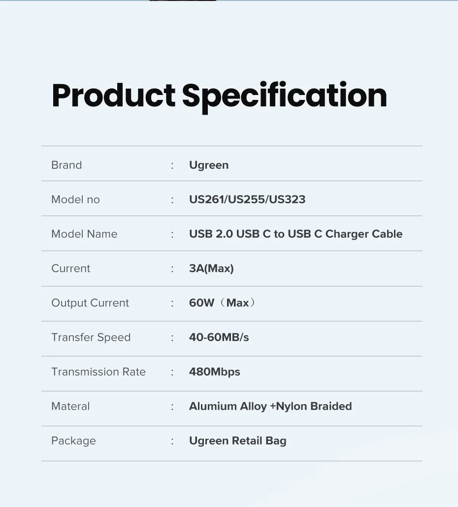 Comprar UGREEN-Cable USB tipo C a USB C para Samsung S10, S9Plus, PD, carga rápida de 60W, 4,0, Cable USB C para Macbook Pro