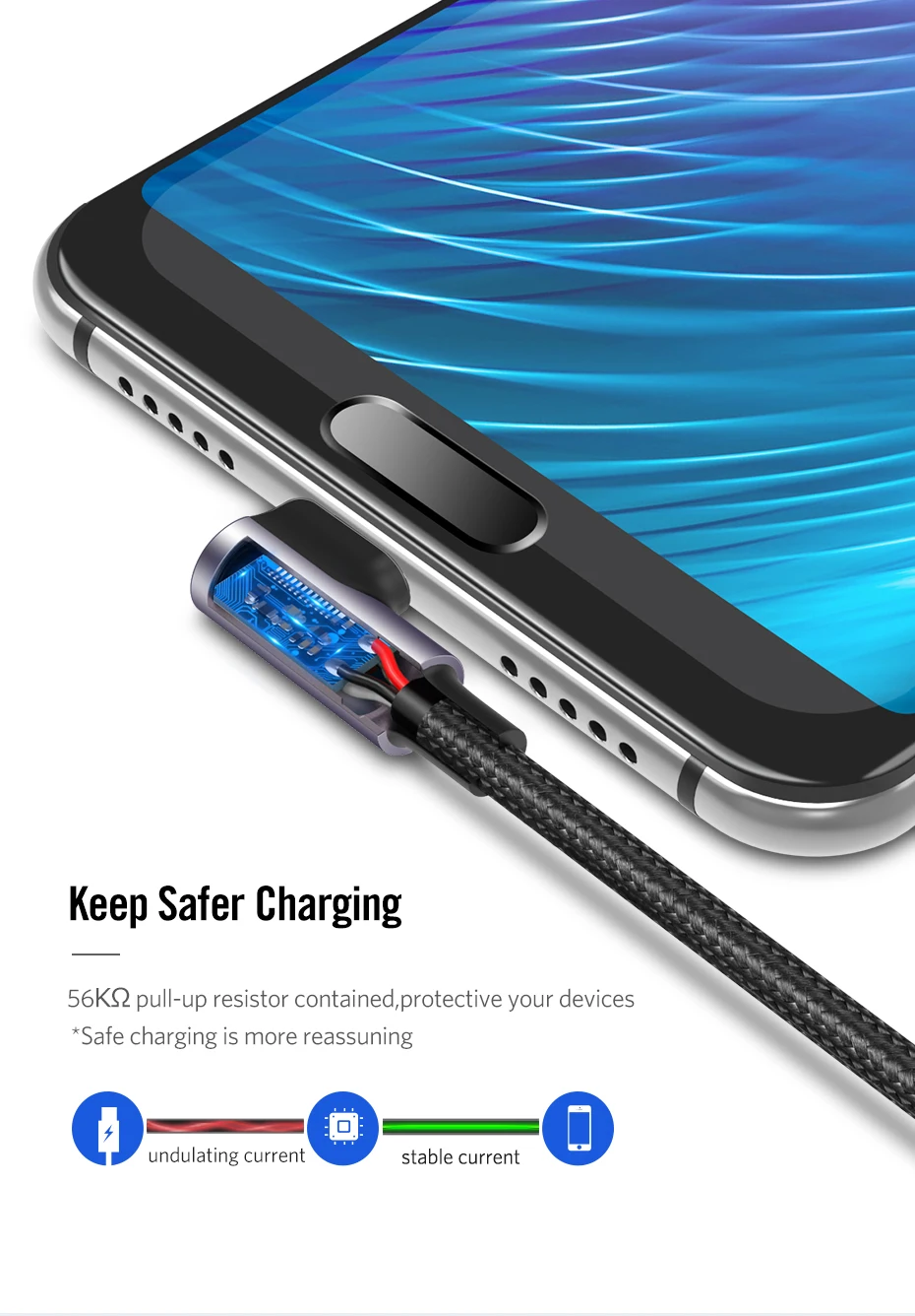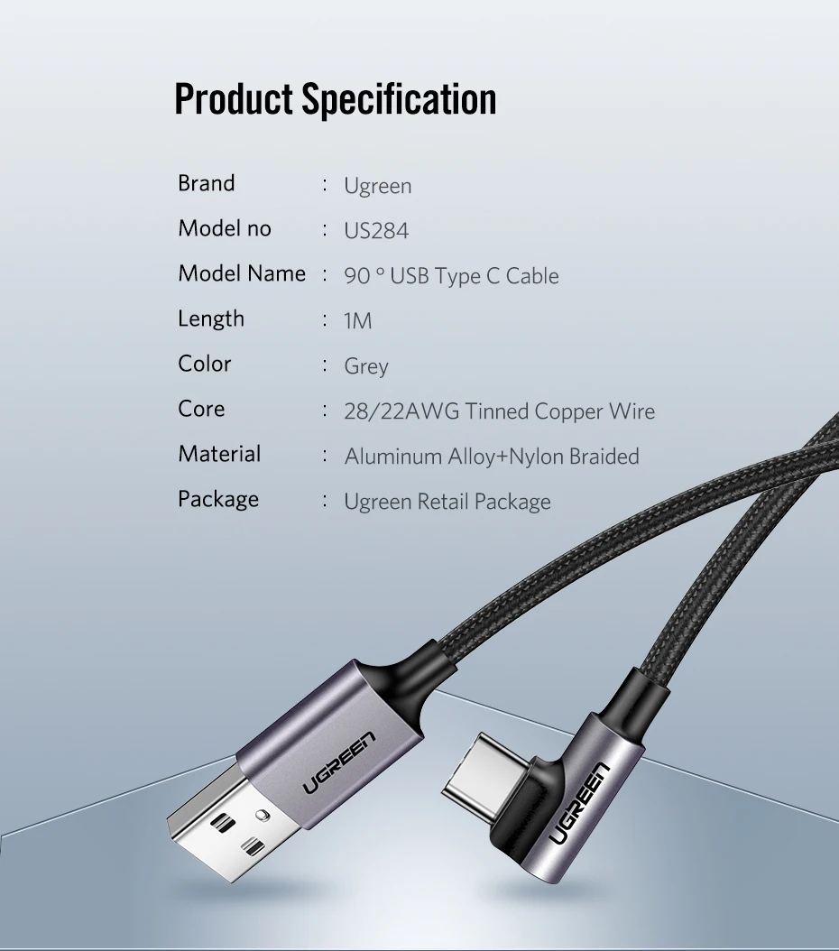 Hermoso cable. Sólido. Se entrega en bolsa Ugreen. con los 90 ° doblar puedo tener el teléfono montado en un soporte. El cable ya no se empuja hacia arriba.