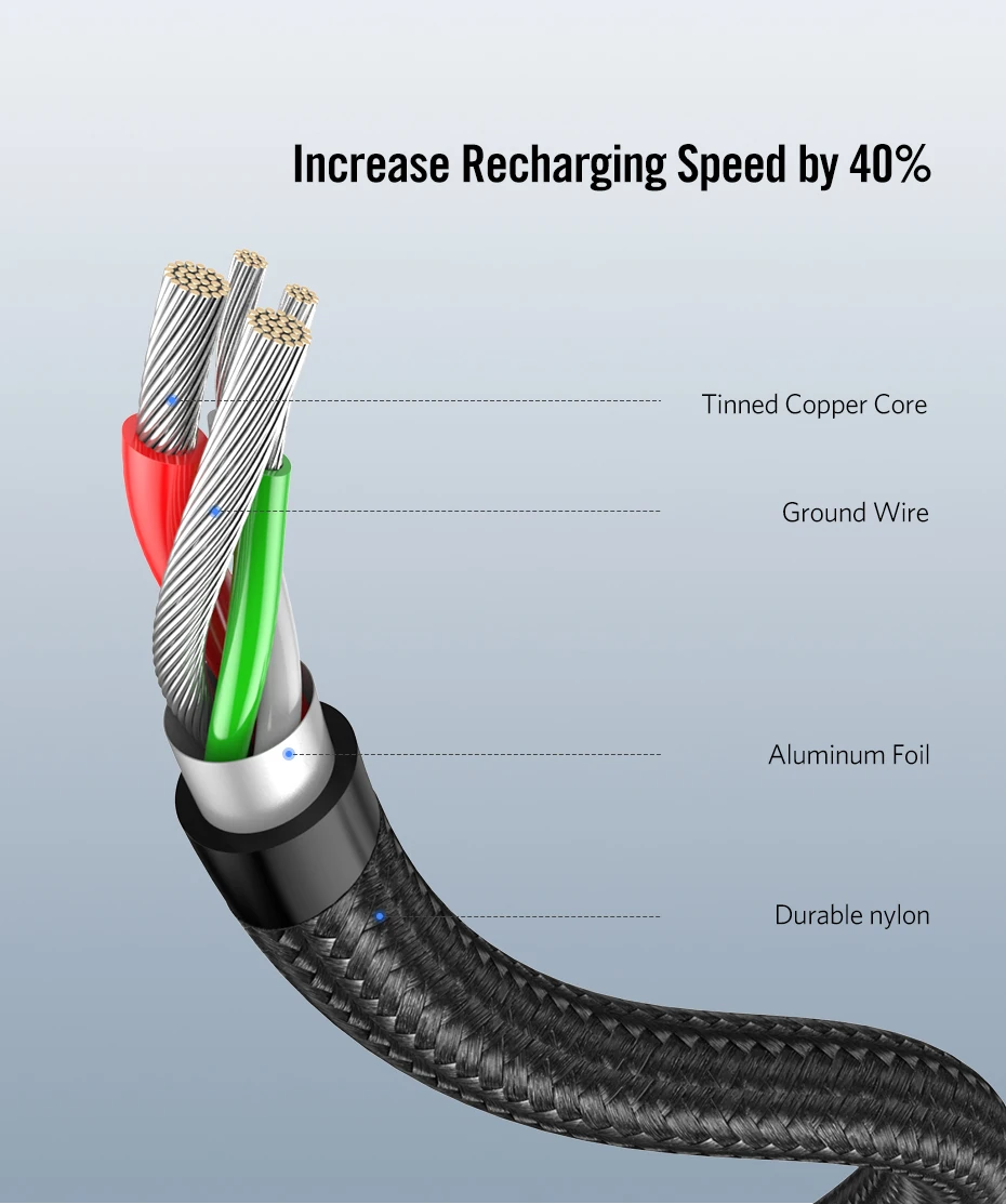 Cable USB de buena calidad con especificaciones reales. Muchas marcas de cables USB más baratas muestran las especificaciones más extravagantes, pero no las cumplen. Este cable cumple absolutamente. Para USB A, el máximo es 3A con 5V = 15W, este cable admite la máxima cantidad de energía a través de USB A y está certificado.