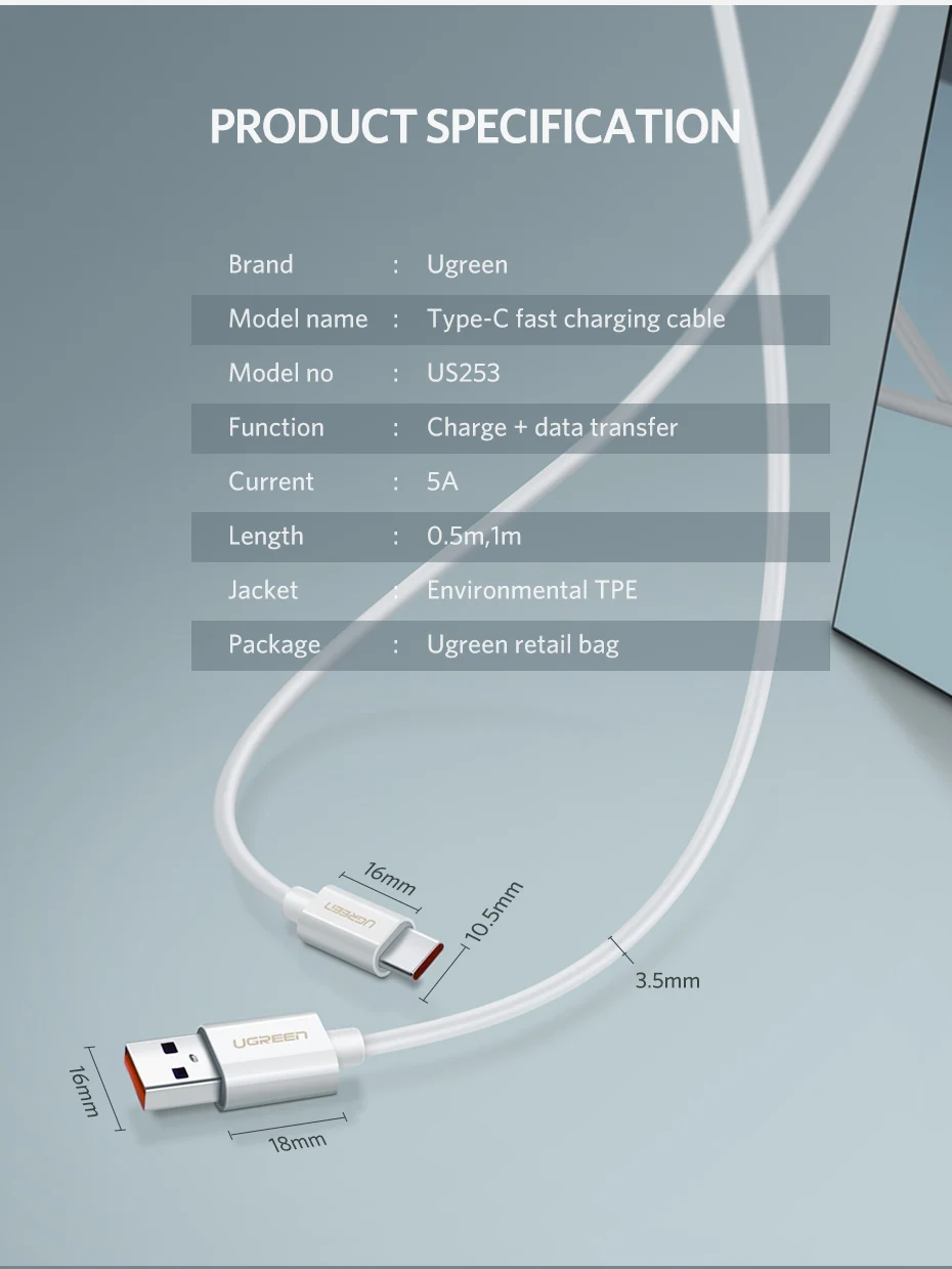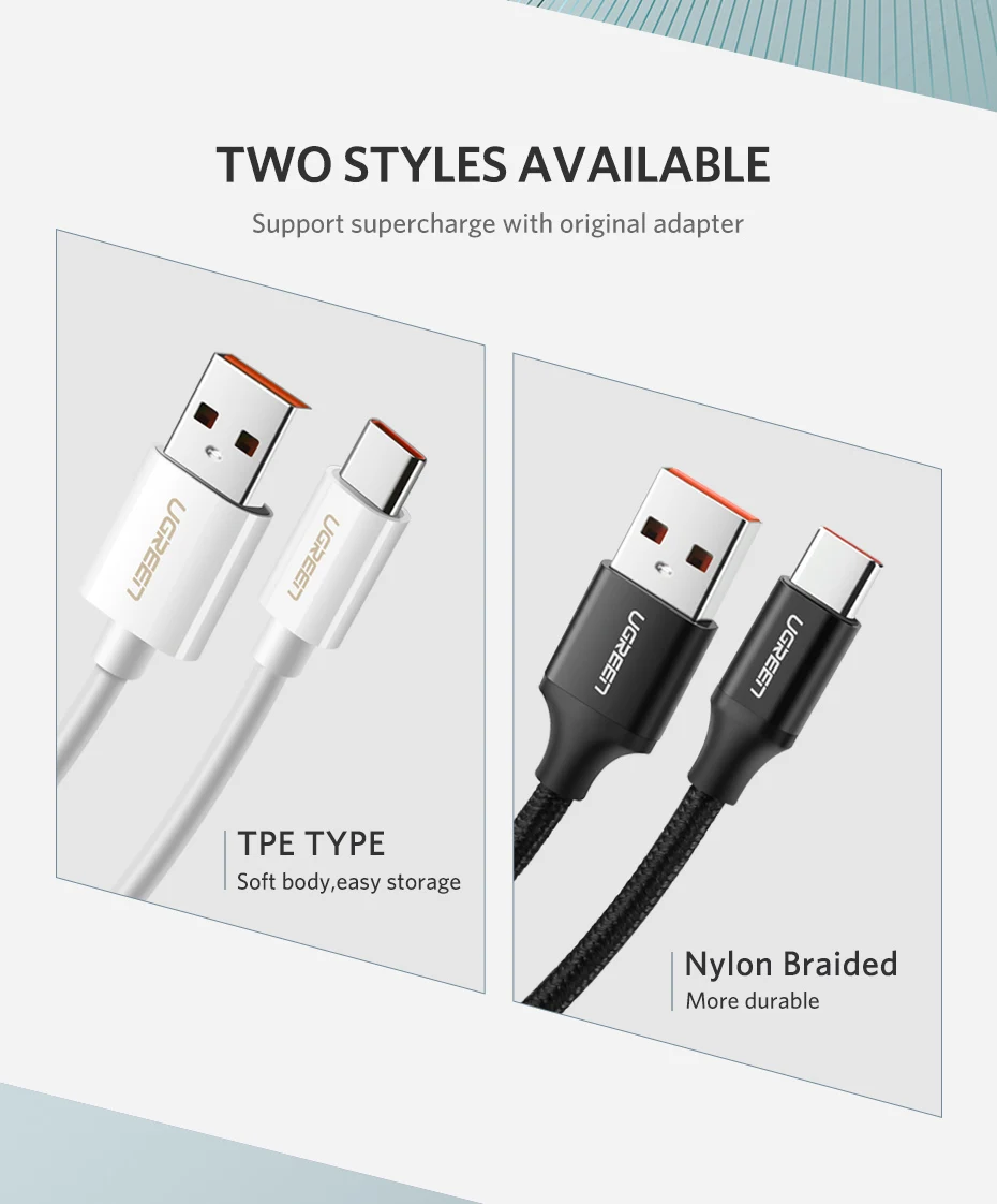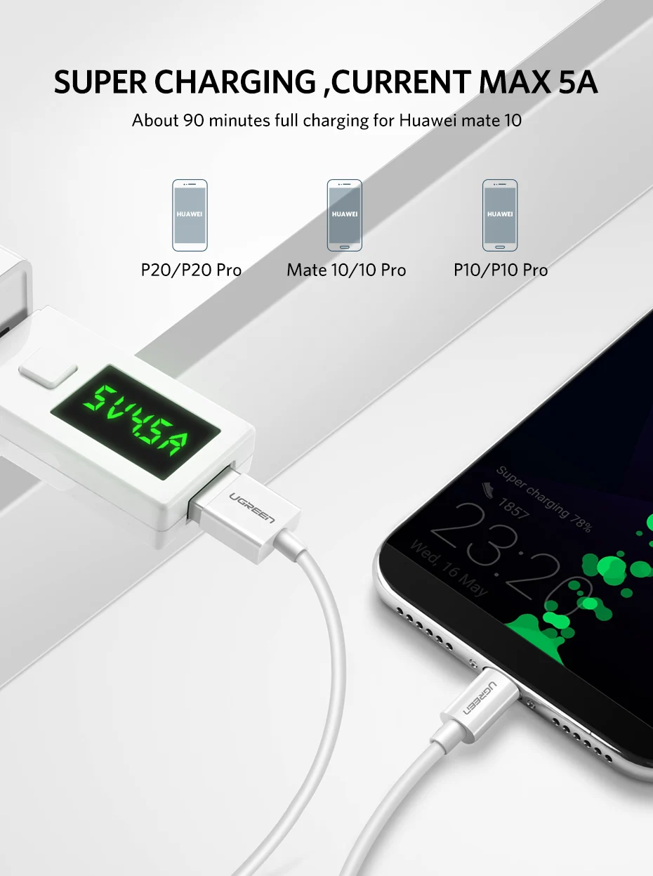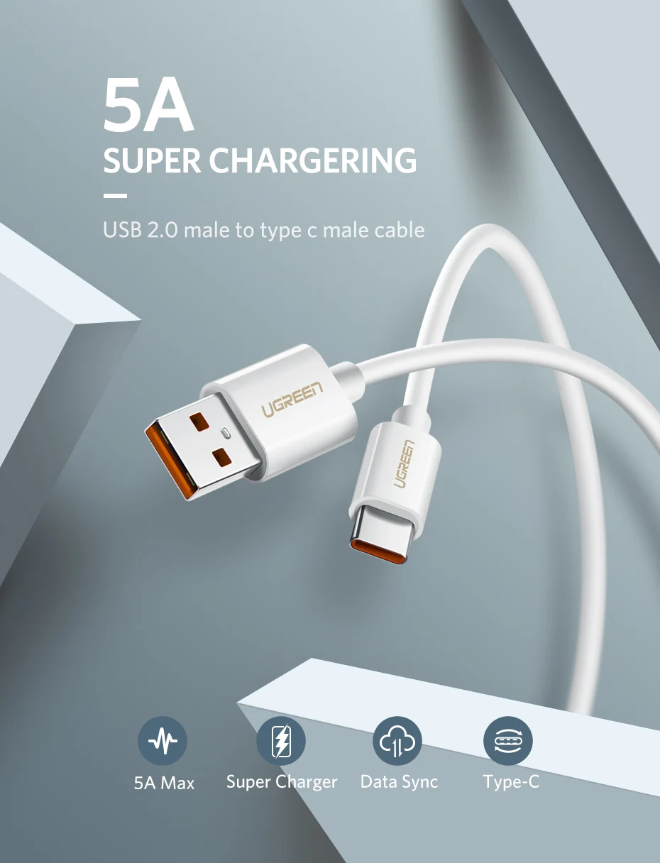 Comprar UGREEN-Cable USB tipo C de carga rápida 3,0, Cable de datos de carga rápida, 5A, para Huawei P30, P20, Mate 30
