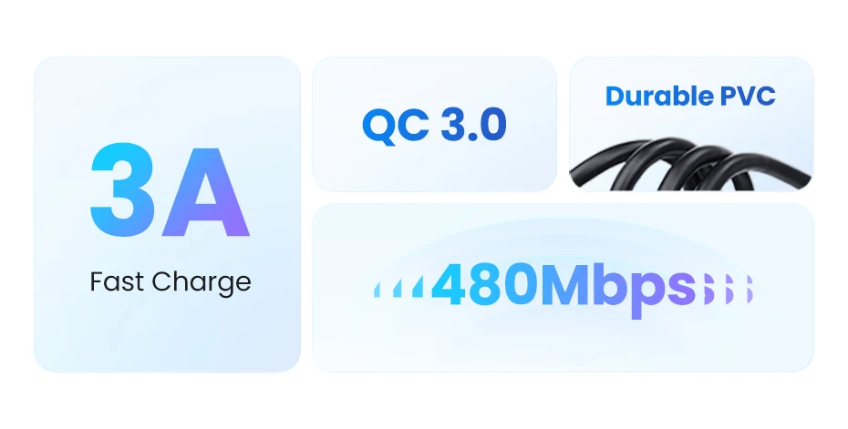 Carga rápida 3ACompatible con especificaciones de carga de 5V/3A, 9V/2A, 12V/1,5A