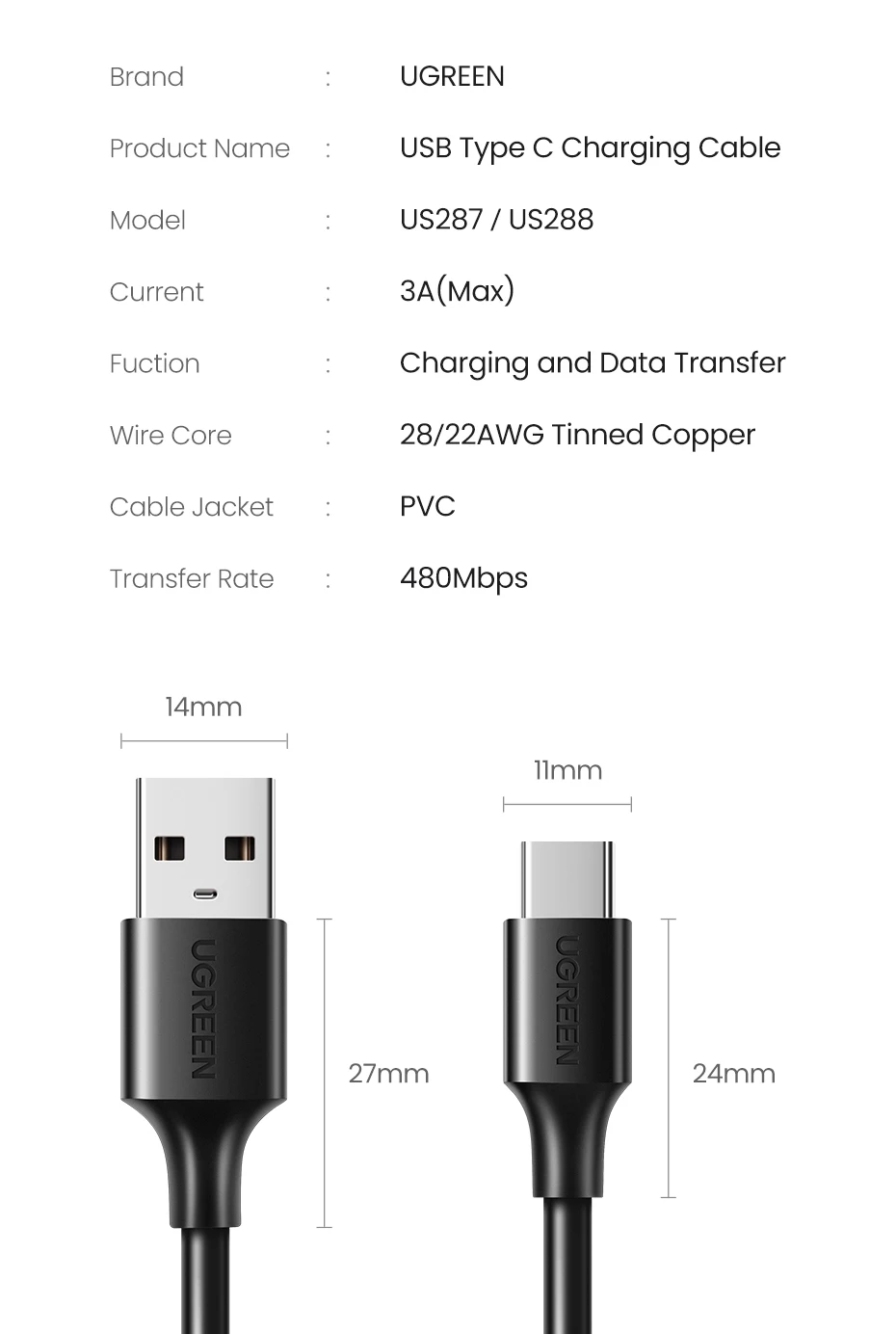 Comprar UGREEN-Cable USB tipo C de carga rápida, Cable de datos, 3A, para iPhone 15, Samsung S23, Xiaomi 11 Pro
