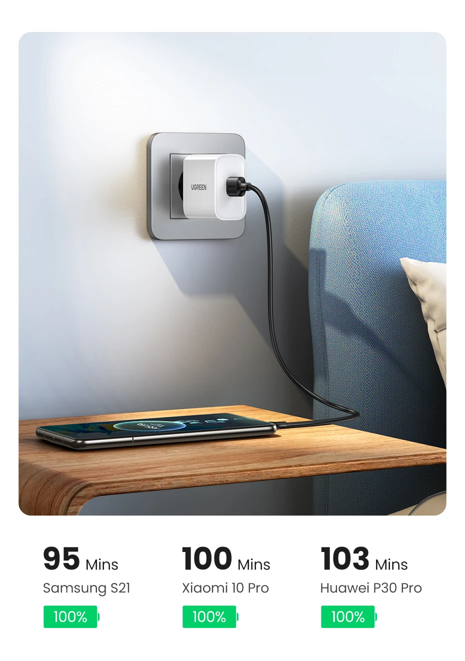 95 minutos de carga completa Samsung S21Admite protocolo de carga QC3.0/2.0/FCP/AFC/BC1.2