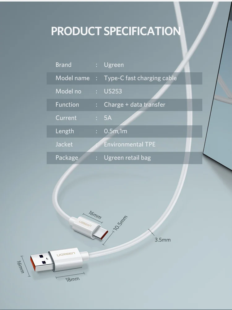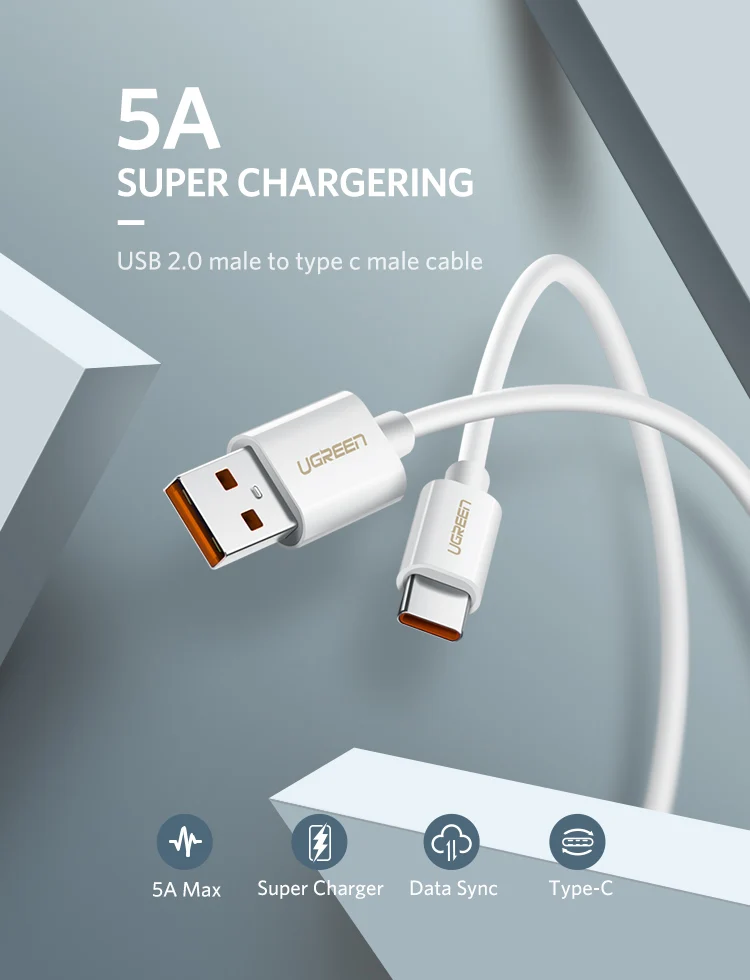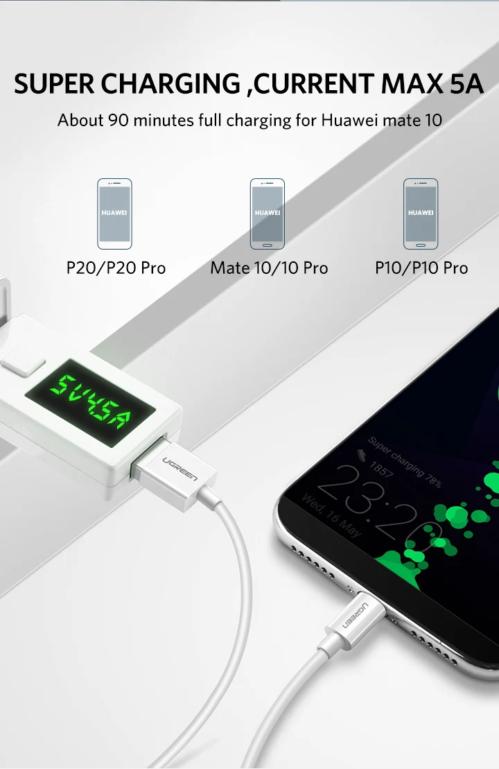 Comprar Ugreen-Cable USB tipo C de carga rápida, Cable de datos tipo C de supercarga para Huawei Mate 30, 20, P30, P20