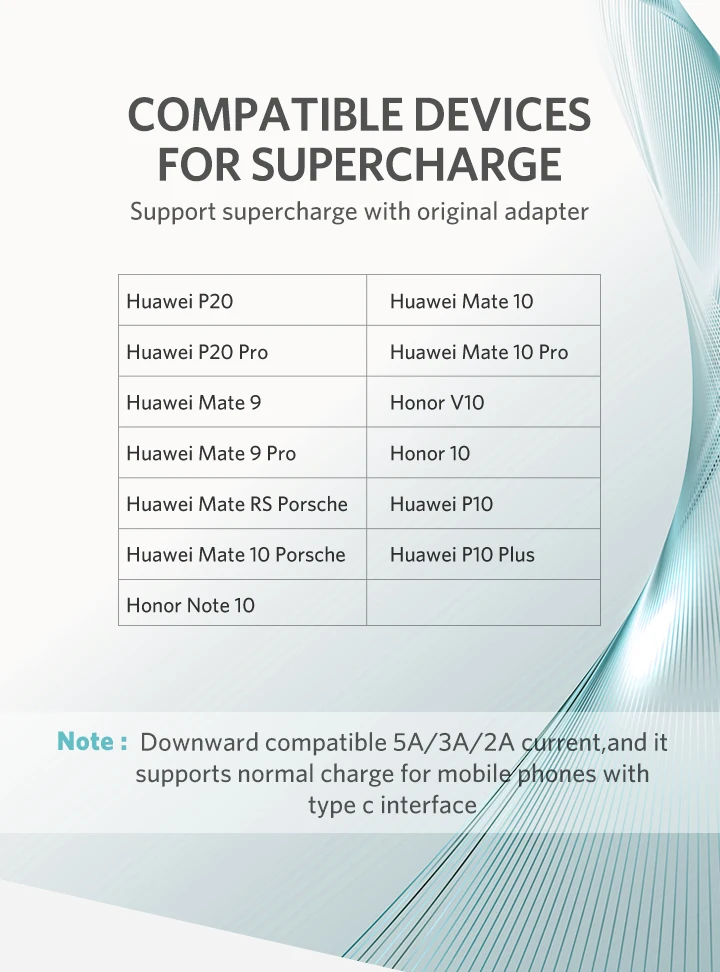 1. La función Supercharge solo funciona en teléfonos inteligentes Huawei/Honor Magic. Nota: Solo el Honor 50 Pro puede alcanzar 100W(20V / 5A), otros modelos solo pueden emitir 66W(11V / 6A) máx. 2. Cuando se usa en teléfonos inteligentes Xiaomi (solo apto para Xiaomi 11/10/9 / 8/8Lite/6X/5 /Mix2s), debe equiparse con el cargador original de Xiaomi y la función de carga rápida 3,0 funcionará, de lo contrario, la función de carga rápida no funcionará y solo se mostrará en carga normal. 3. Solo funciona en Huawei/Honor Magic/Xiaomi Smartphones, otras marcas de teléfonos inteligentes no funcionarán.