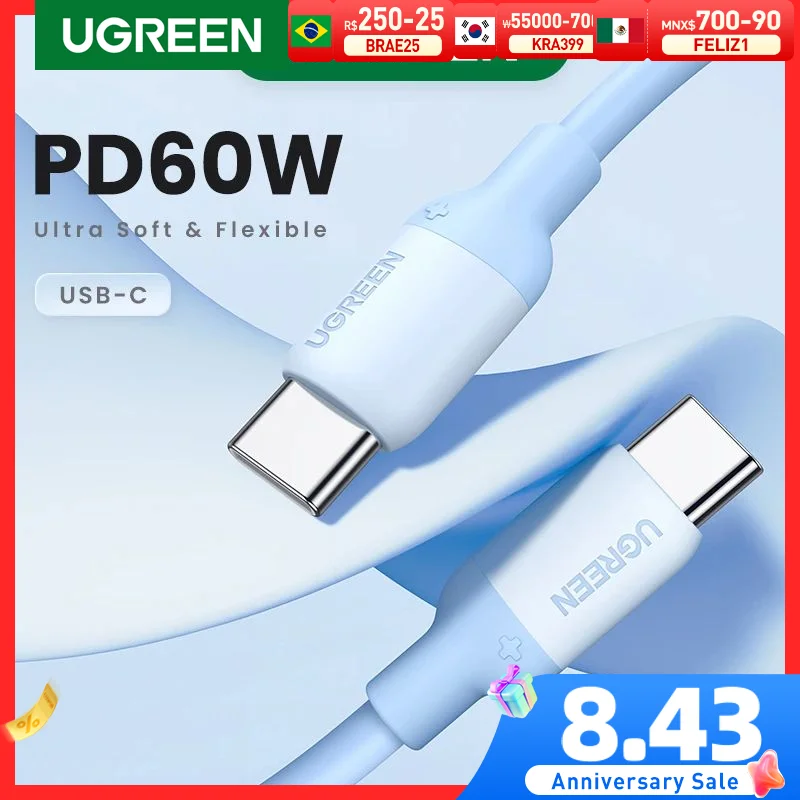 Comprar UGREEN-Cable USB tipo C de carga rápida para Macbook, Xiaomi, Samsung, POCO, 60W, 100W, PD