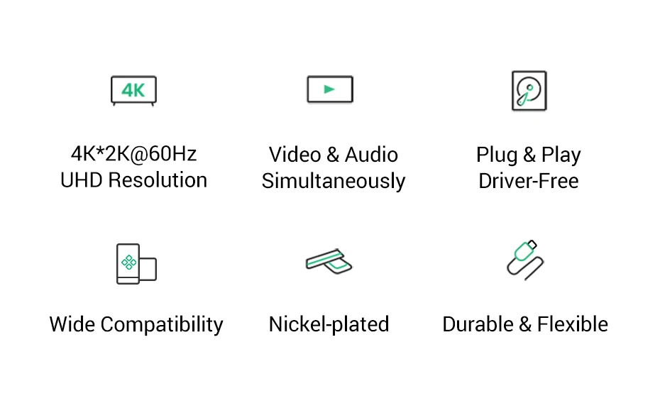 Resolución 4K * 2K @ 60Hz UHD • Vídeo y audio simultáneamente • Controlador Plug & Play-Free