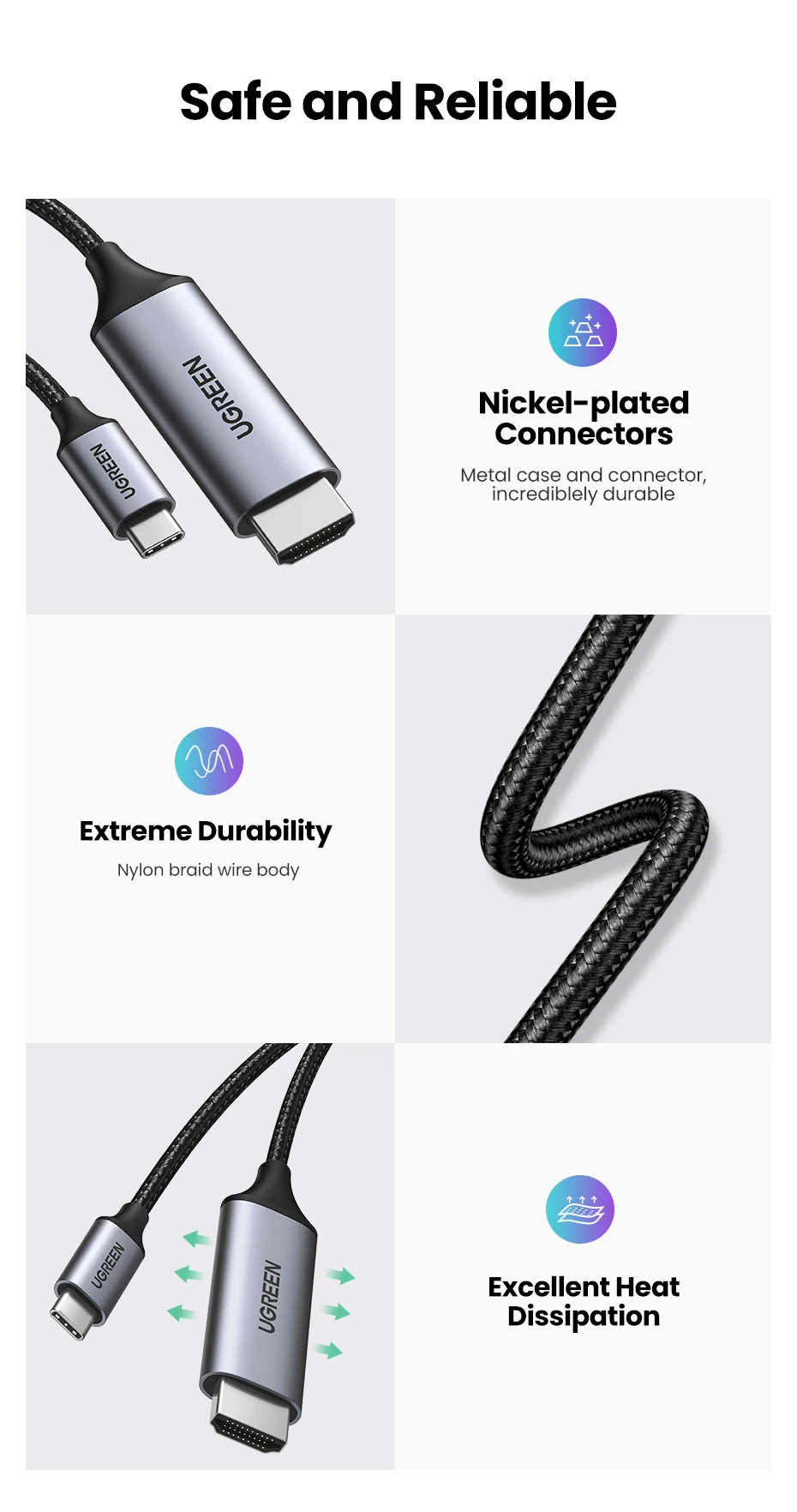 Preguntas frecuentes:P1: ¿Es compatible con Google Samsung Chromebook OS?A1: Este cable USB C a HDMI es Plug and Play. Si su Samsung Chromebook de Google tiene un puerto USB C que admite carga, transmisión de datos y salida de vídeo, este cable funcionará con él.P2: ¿Es compatible con Google Pixel 3 XL?R2: No, este cable USB C a HDMI no es compatible con Google Pixel 3 xl, que no admite salida de vídeo a través del puerto USB C.P3: ¿Se puede conectar con la pantalla multimedia del coche a través del puerto HDMI de mi coche?R3: Sí, el cable USB C a HDMI puede admitir esta conexión, pero su pantalla debe admitir la resolución de su teléfono.P4: ¿Es compatible con XIAOMI MI 10?R4: No, no es compatible con todos los teléfonos XIAOMI. Porque el teléfono móvil Xiaomi no admite la función de salida de vídeo.Pero es compatible con las tabletas XIAOMI.P5: No funciona. Desde el teléfono a la televisión a través de HDMI compatible sin señal.R5: Primero, asegúrese de que su teléfono sea compatible con este artículo.Comprar UGREEN-Cable USB tipo C HDMI, adaptador para PC, Macbook Pro, iPad, Samsung Galaxy, XPS, Pixelbook, 4K, 60HZ