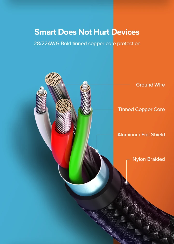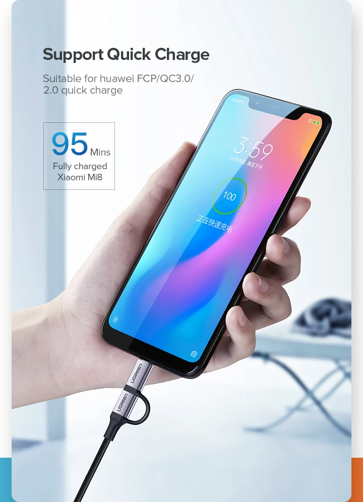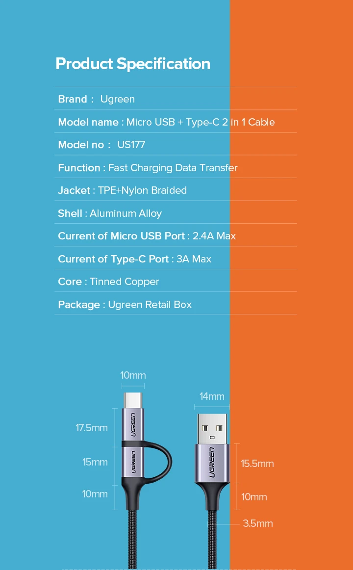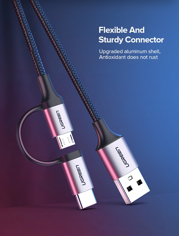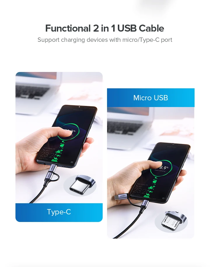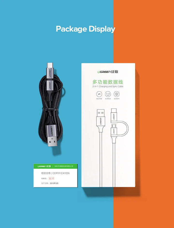 Comprar Ugreen-Cable USB tipo C para Samsung Galaxy S10 S9 2 en 1, Cable de datos de carga rápida, Cable de cargador USB para teléfono móvil