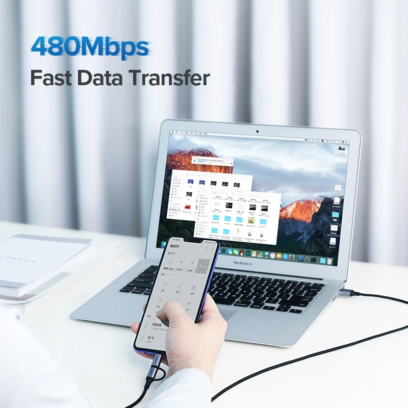 Comprar Ugreen-Cable USB tipo C para Samsung Galaxy S10 S9 2 en 1, Cable de datos de carga rápida, Cable de cargador USB para teléfono móvil