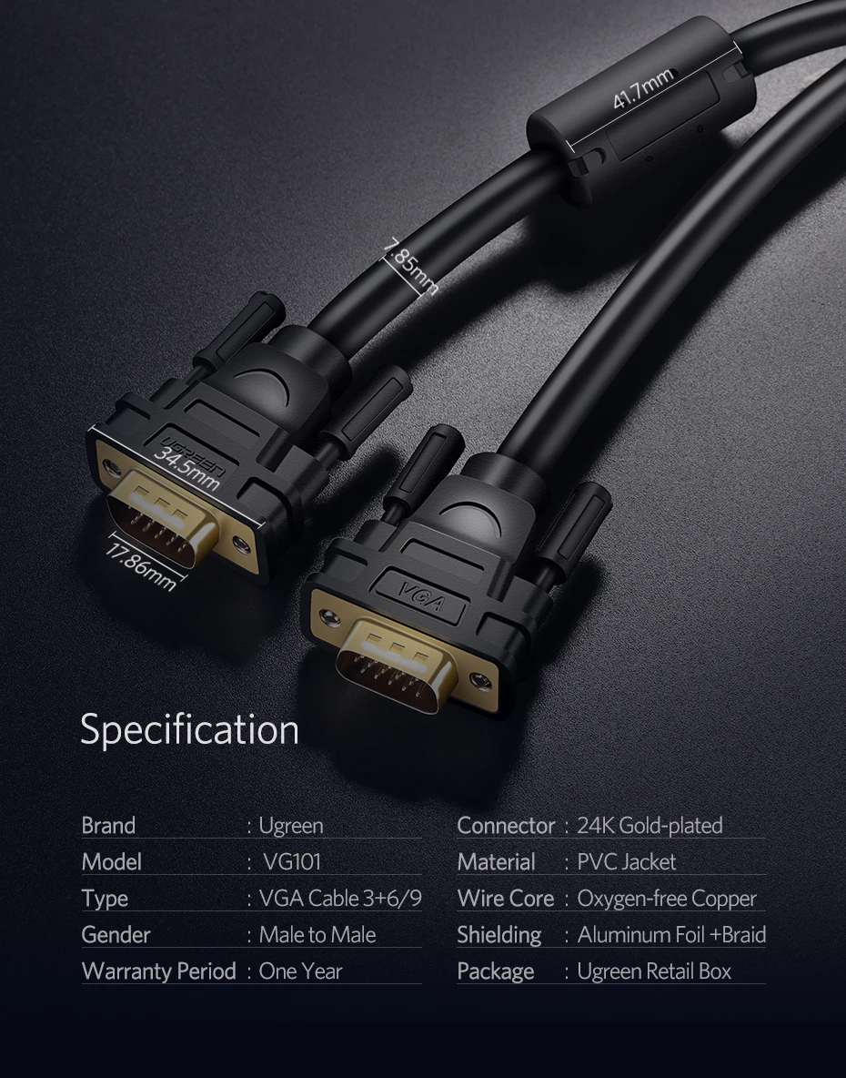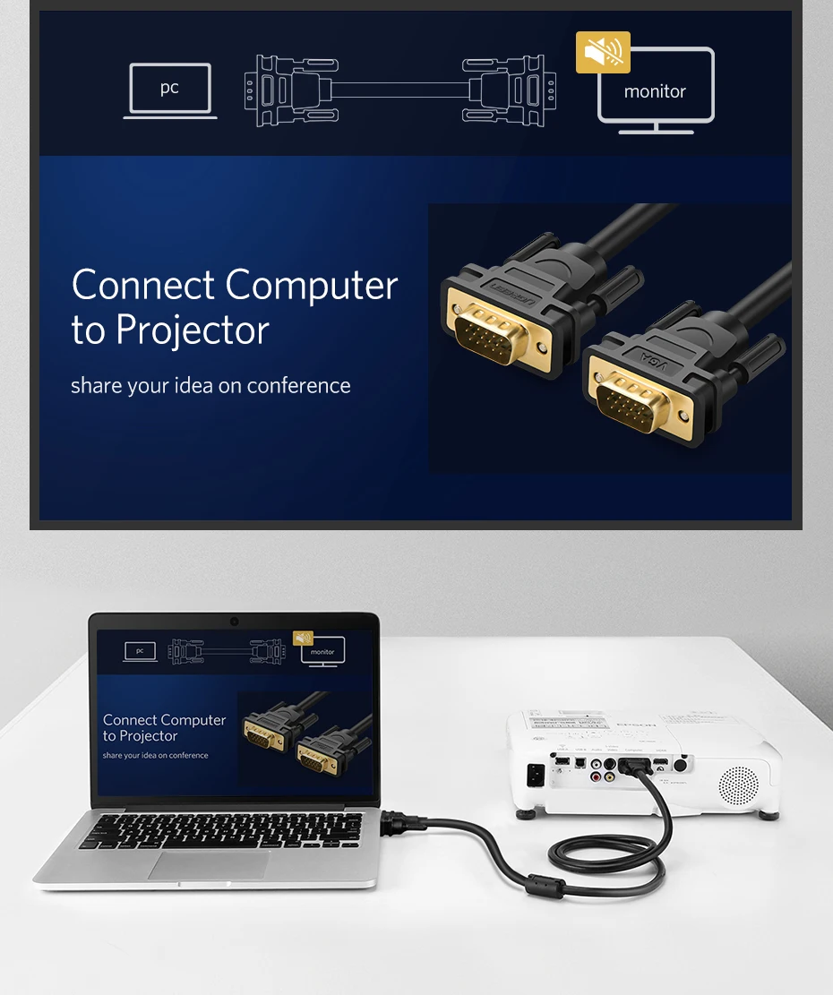 Comprar Ugreen-Cable VGA macho a macho, 1080P, 5m, 10m, Cabo, 15 Pines, para TV, ordenador, Monitor, proyector, 28 AWG