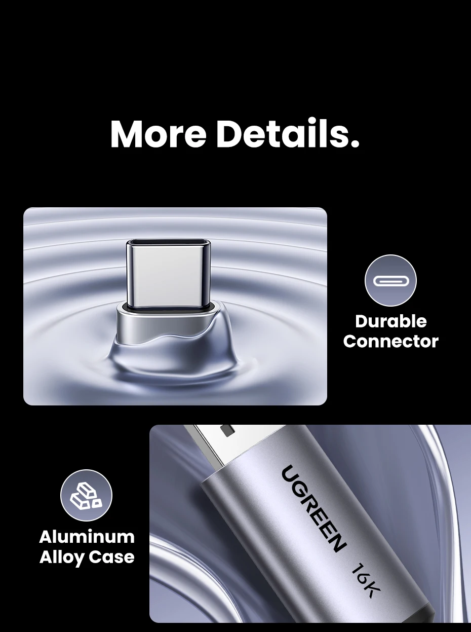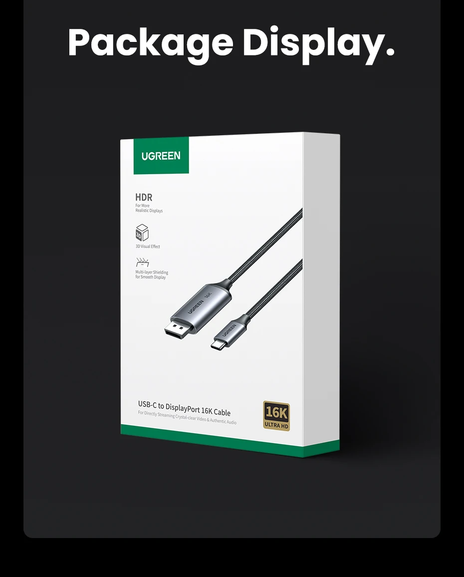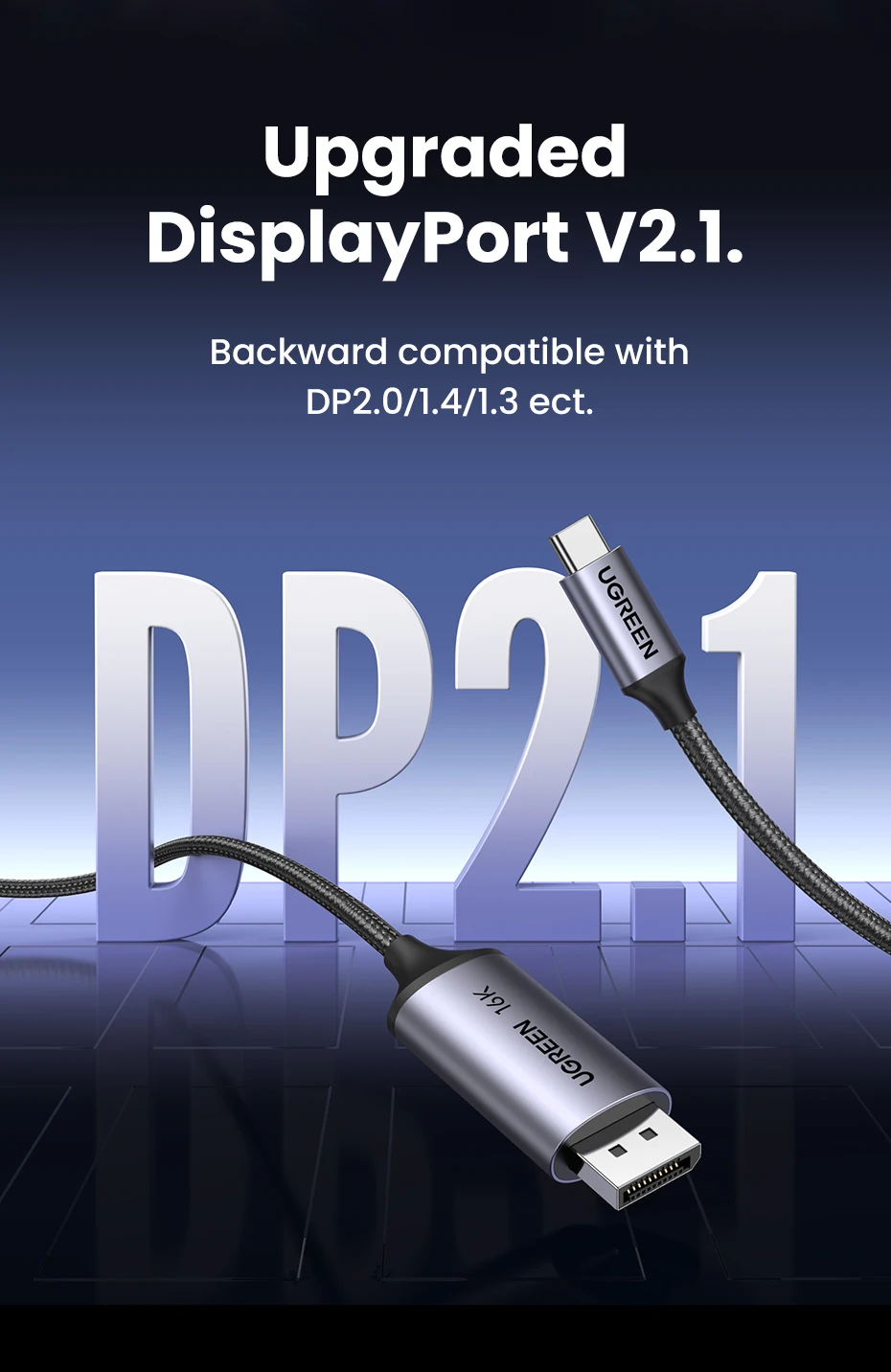 Comprar UGREEN-Cable de vídeo USB C a 16K Displayport 2,1 para MacBook Pro/Air 6K @ 30Hz 8K @ 60Hz Thunderbolt 3/4 40Gbps tipo C a 16K DP 2,1