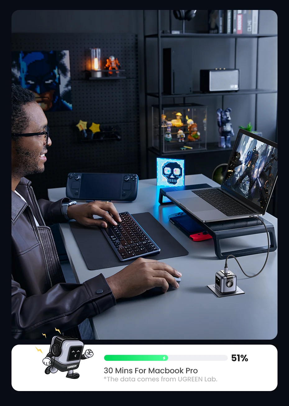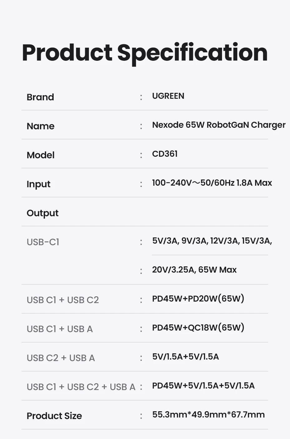 Ugreen-cargador de 65W GaN para móvil, dispositivo de carga rápida con diseño de Robot QC 4,0, 3,0 PPS, para iPhone 15, 14, 13 Pro, Macbook, tableta, PD 3,0