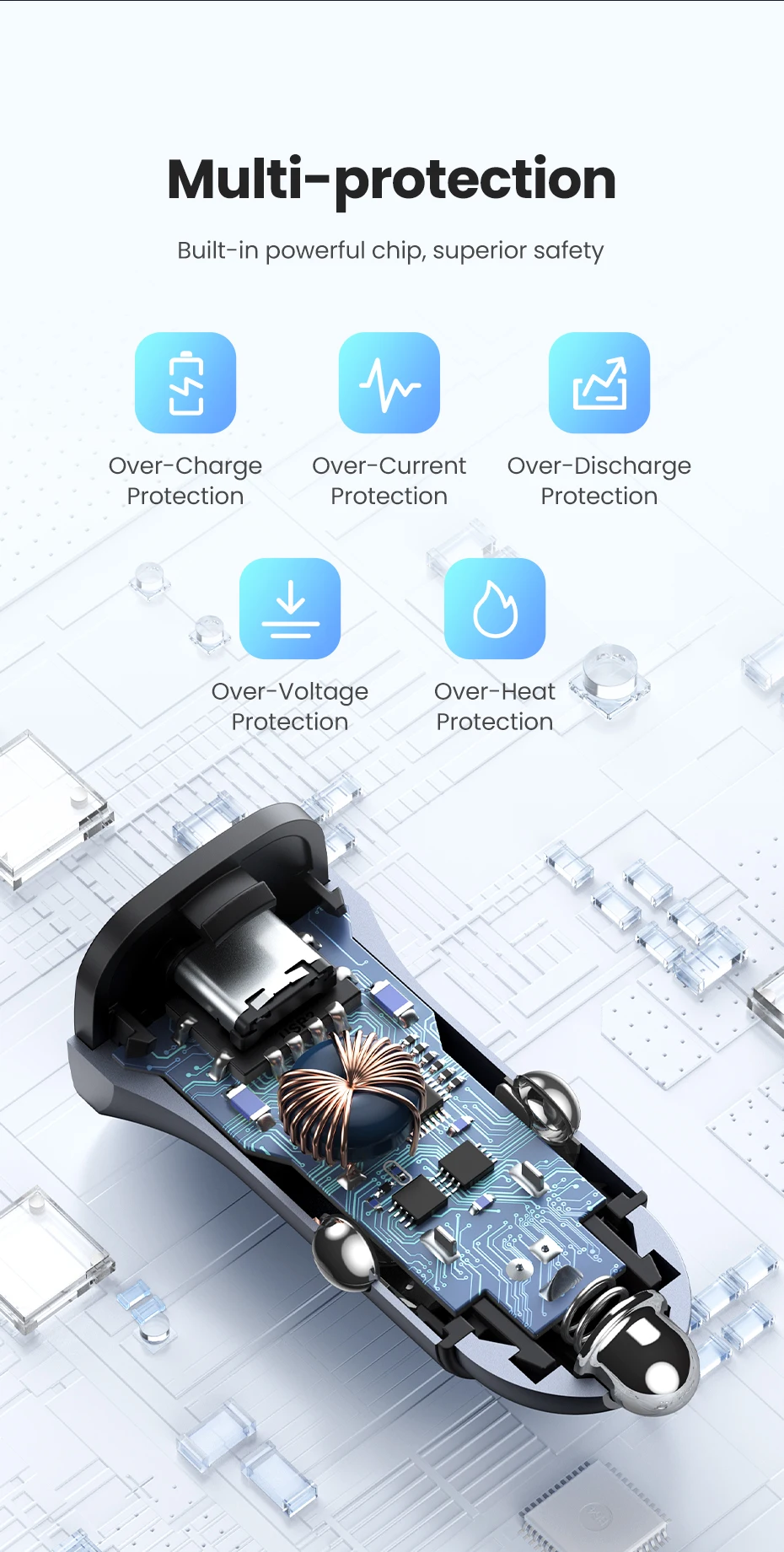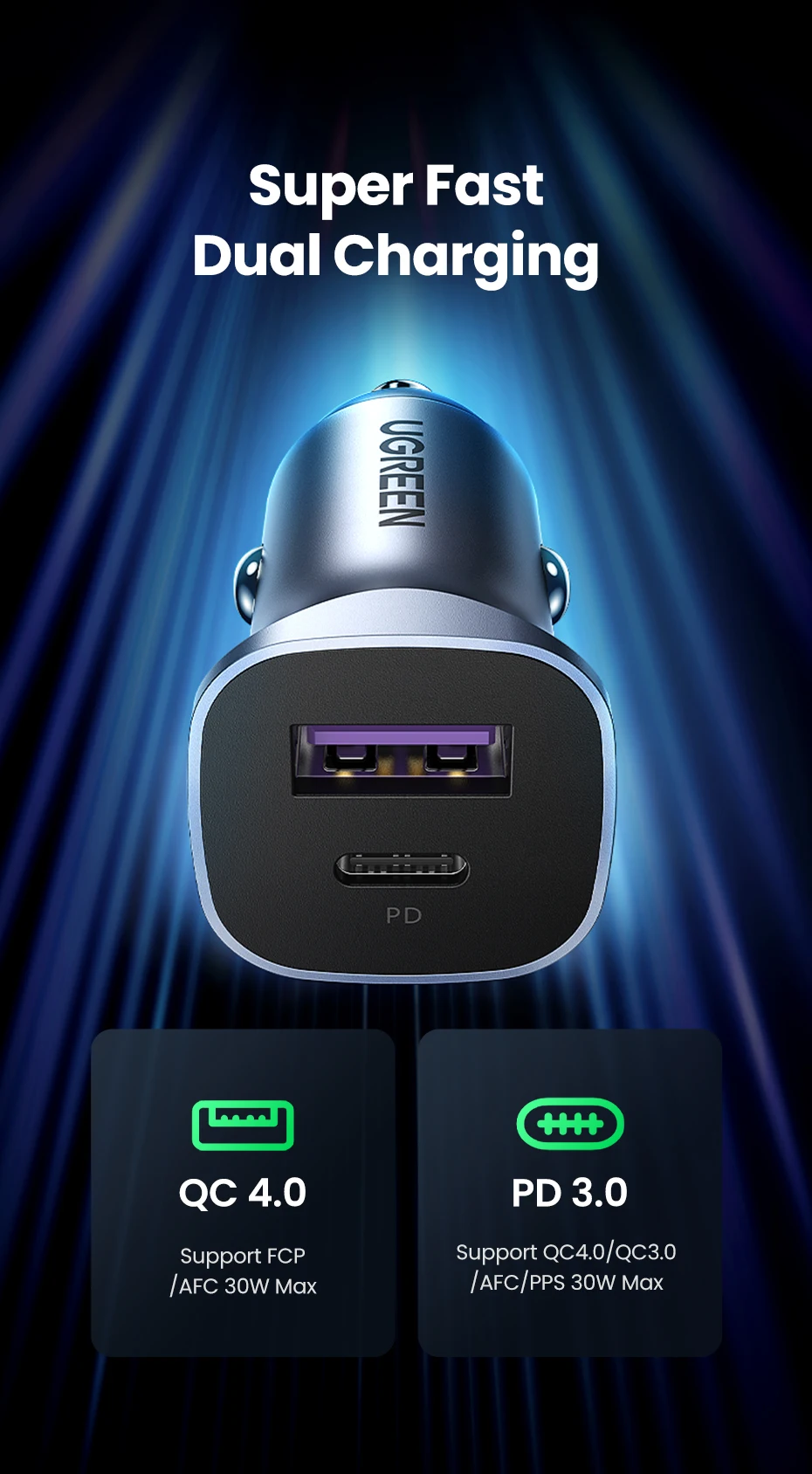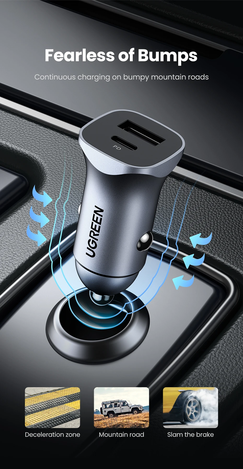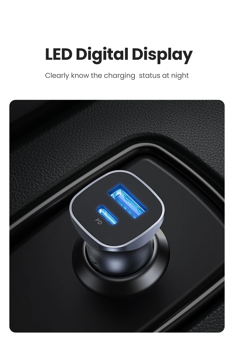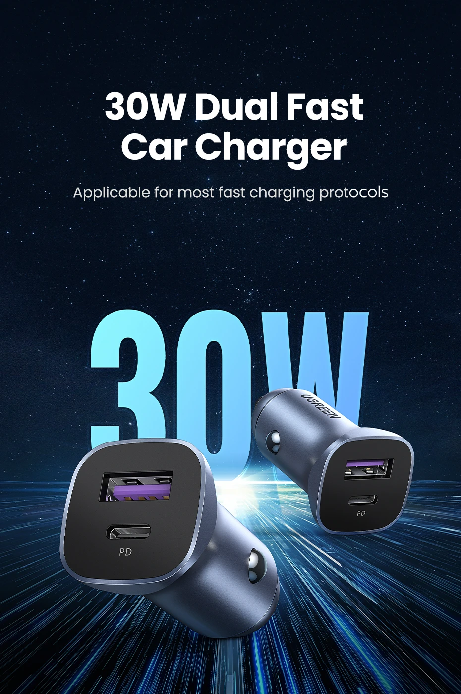 Comprar UGREEN-cargador de coche con puerto Dual QC 4,0 3,0, carga rápida para iPhone 14, 13, 12, Xiaomi, Huawei, Samsung, cargador tipo C Supercharge, 30W