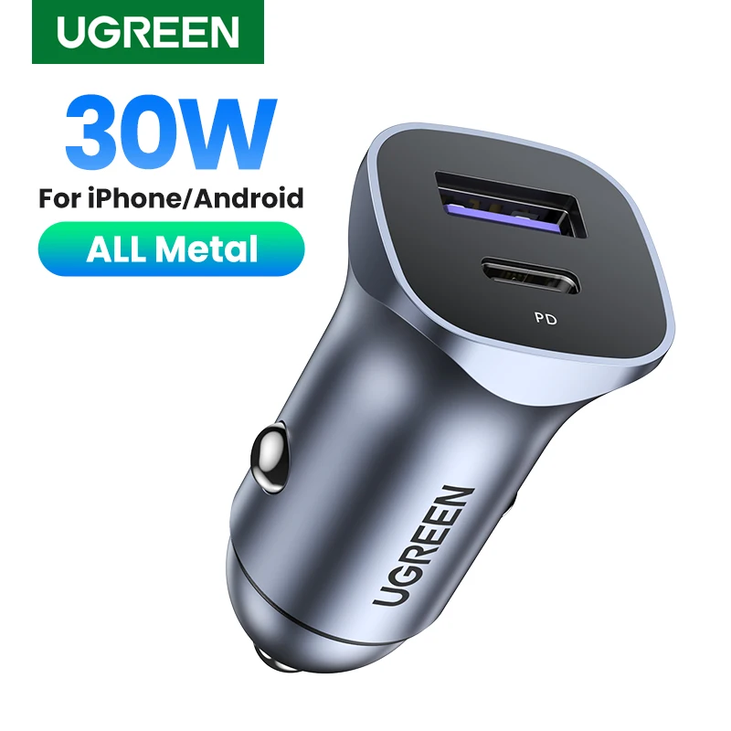 Comprar UGREEN-cargador de coche con puerto Dual QC 4,0 3,0, carga rápida para iPhone 14, 13, 12, Xiaomi, Huawei, Samsung, cargador tipo C Supercharge, 30W