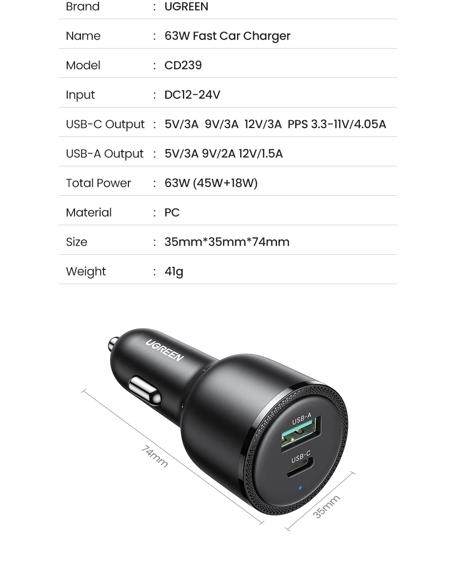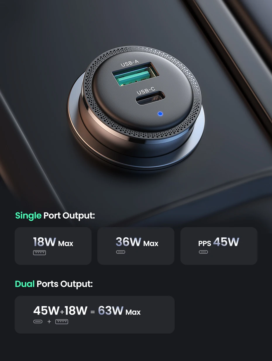 ✔63W Total Output✔PD3.0(PPS 45W) ✔QC3.0 ✔iOS & Android ✔Not Get Hot ✔12-24V Vehicles