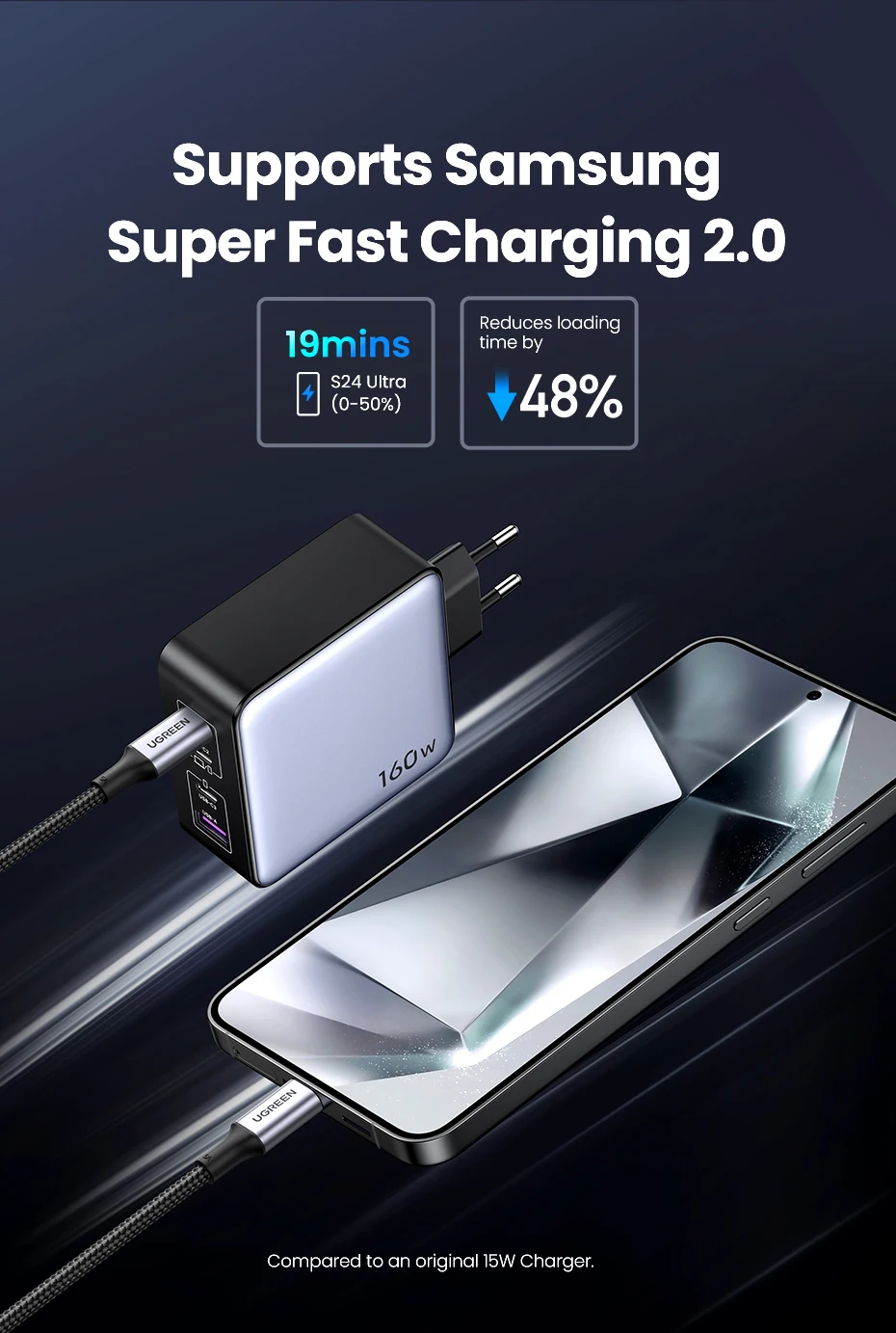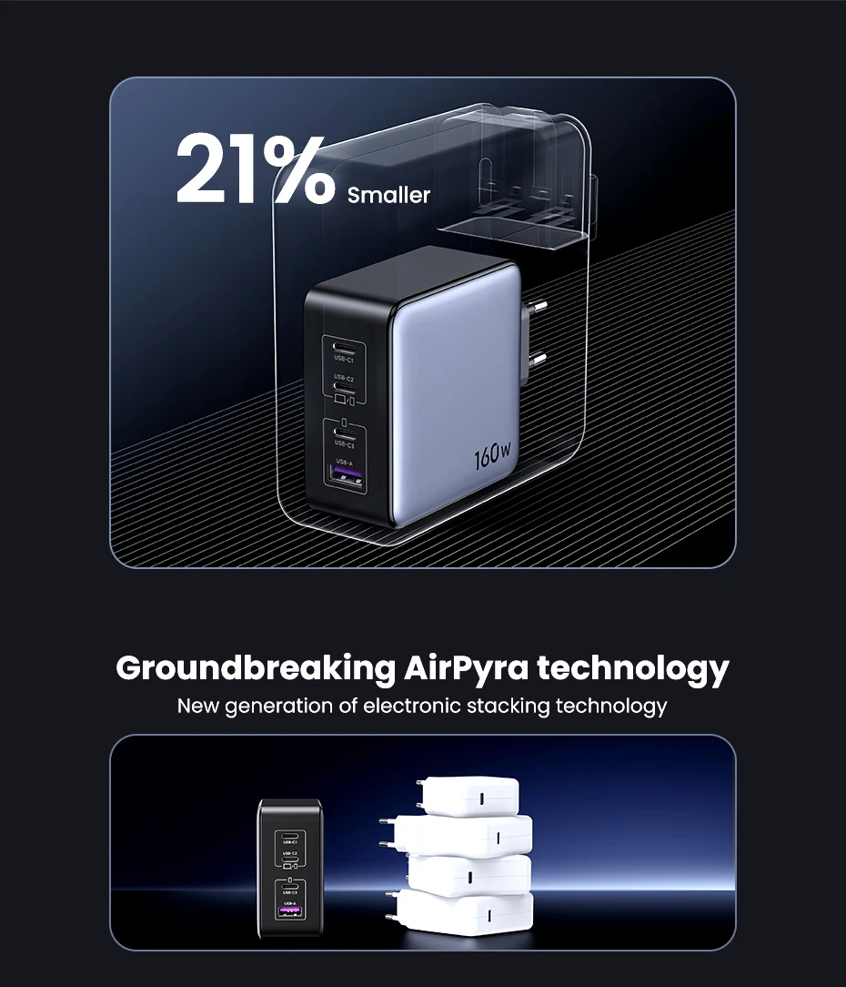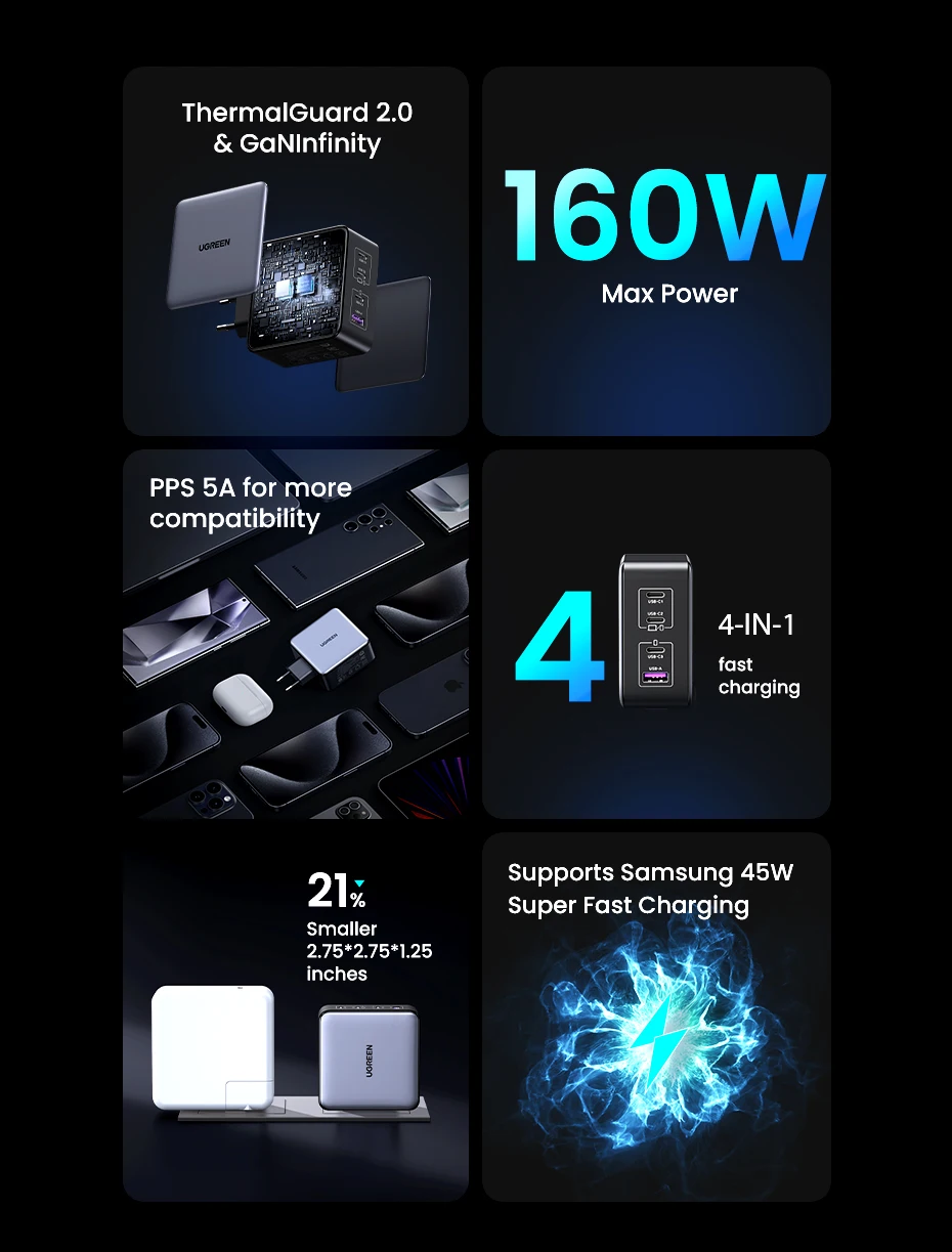 Comprar UGREEN-cargador GaN de 160W para ordenador portátil, dispositivo de carga rápida tipo C PD3.1 para Macbook Pro, QC4.0 3,0, iPhone 15, Xiaomi y Tablet