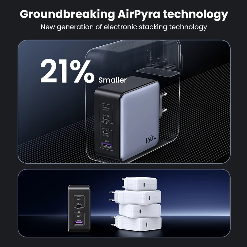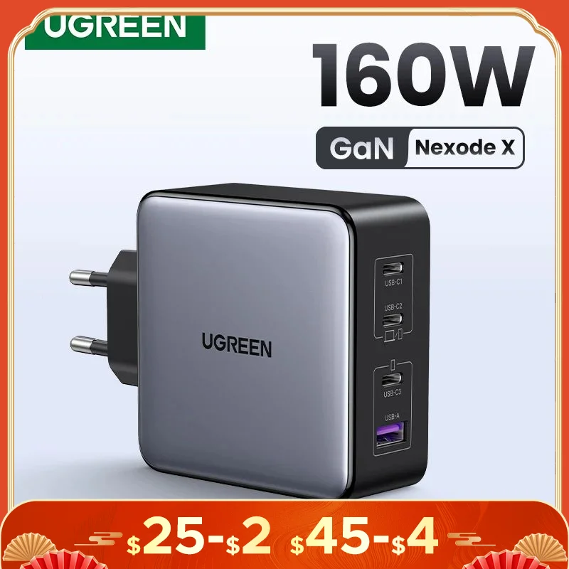 Comprar UGREEN-cargador GaN de 160W para ordenador portátil, dispositivo de carga rápida tipo C PD3.1 para Macbook Pro, QC4.0 3,0, iPhone 15, Xiaomi y Tablet