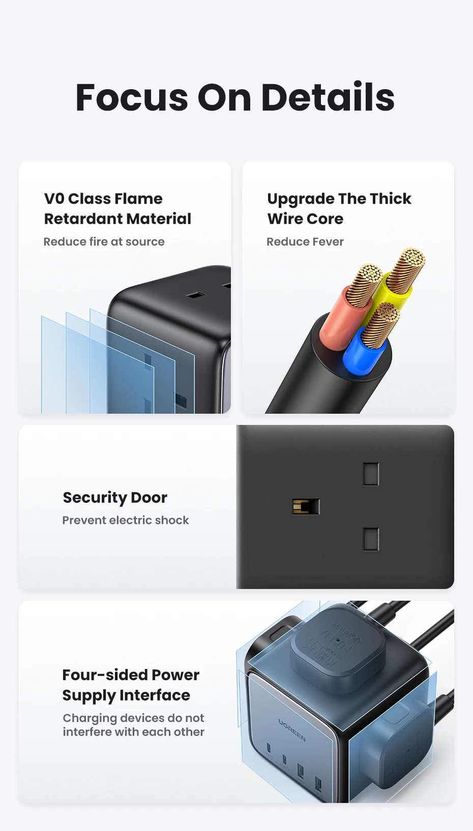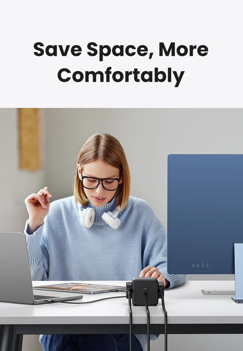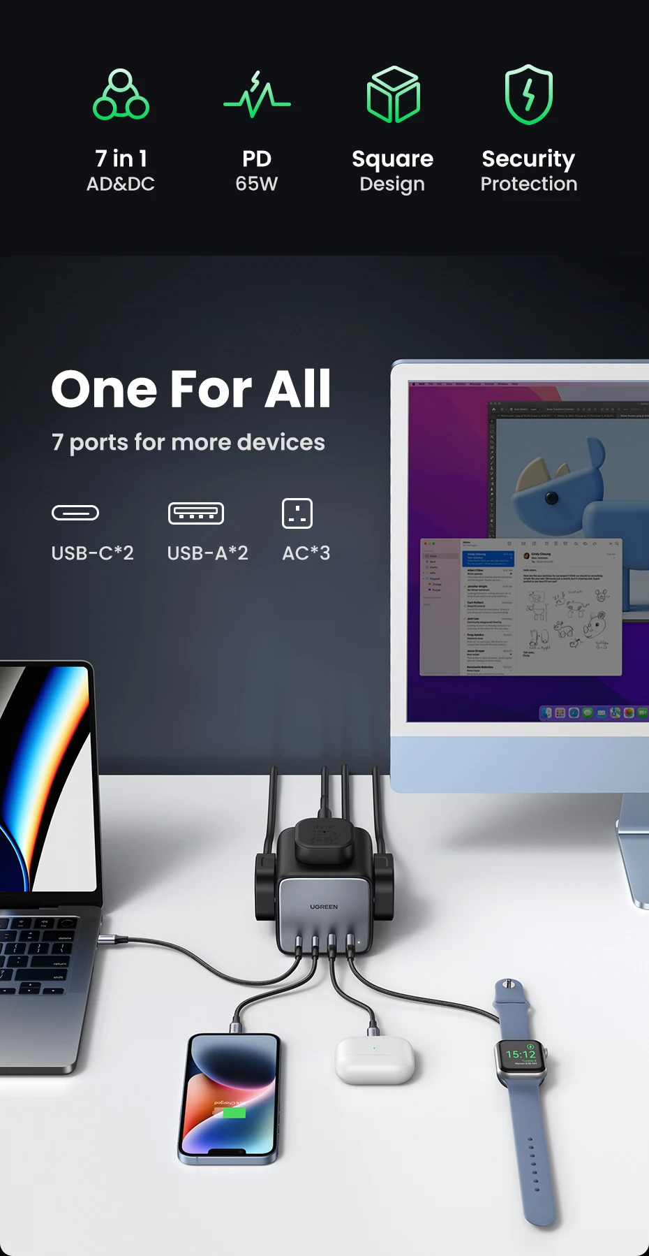 UGREEN-cargador GaN de 65W, estación de carga de escritorio, tira de alimentación USB C, cargador rápido para ordenador portátil, Macbook, iPhone 17, 16, teléfono Android
