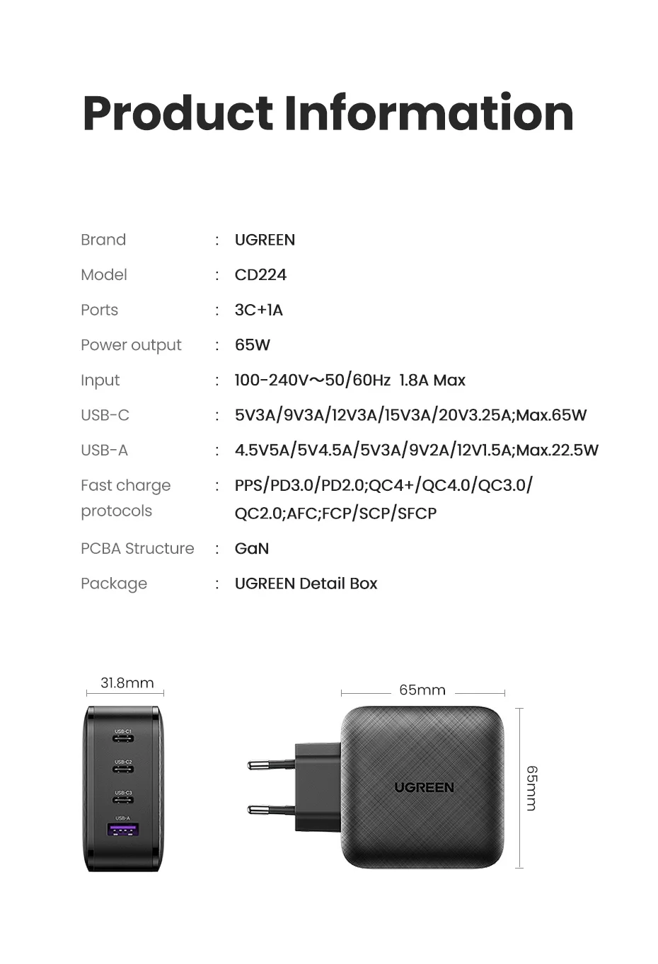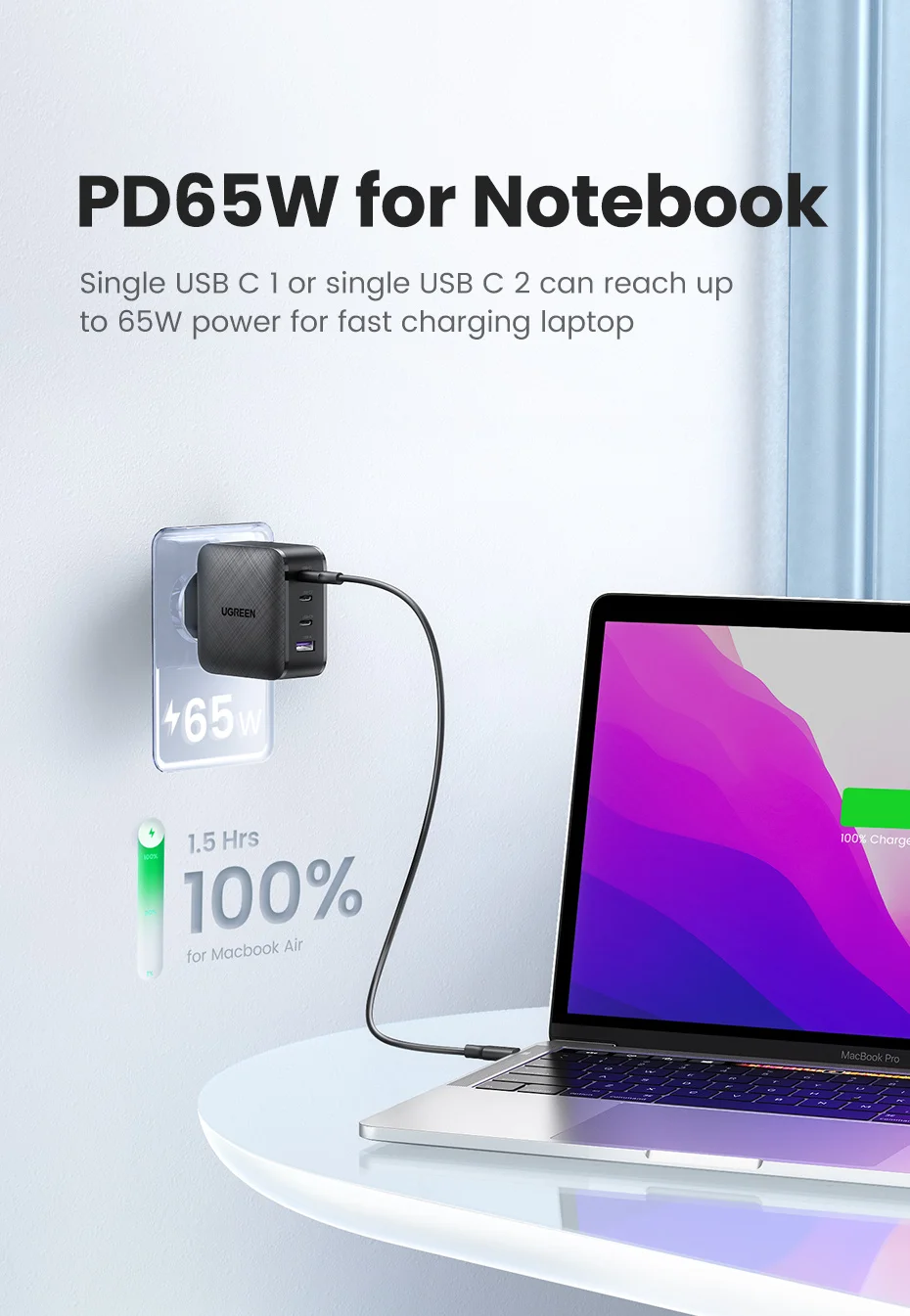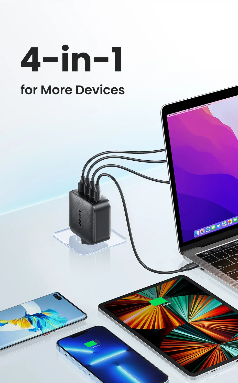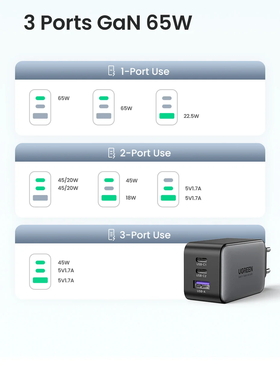 Comprar UGREEN-cargador GaN para tableta, dispositivo de carga rápida 3,0 4,0 SCP, Huawei, USB C, Xiaomi, Notebook