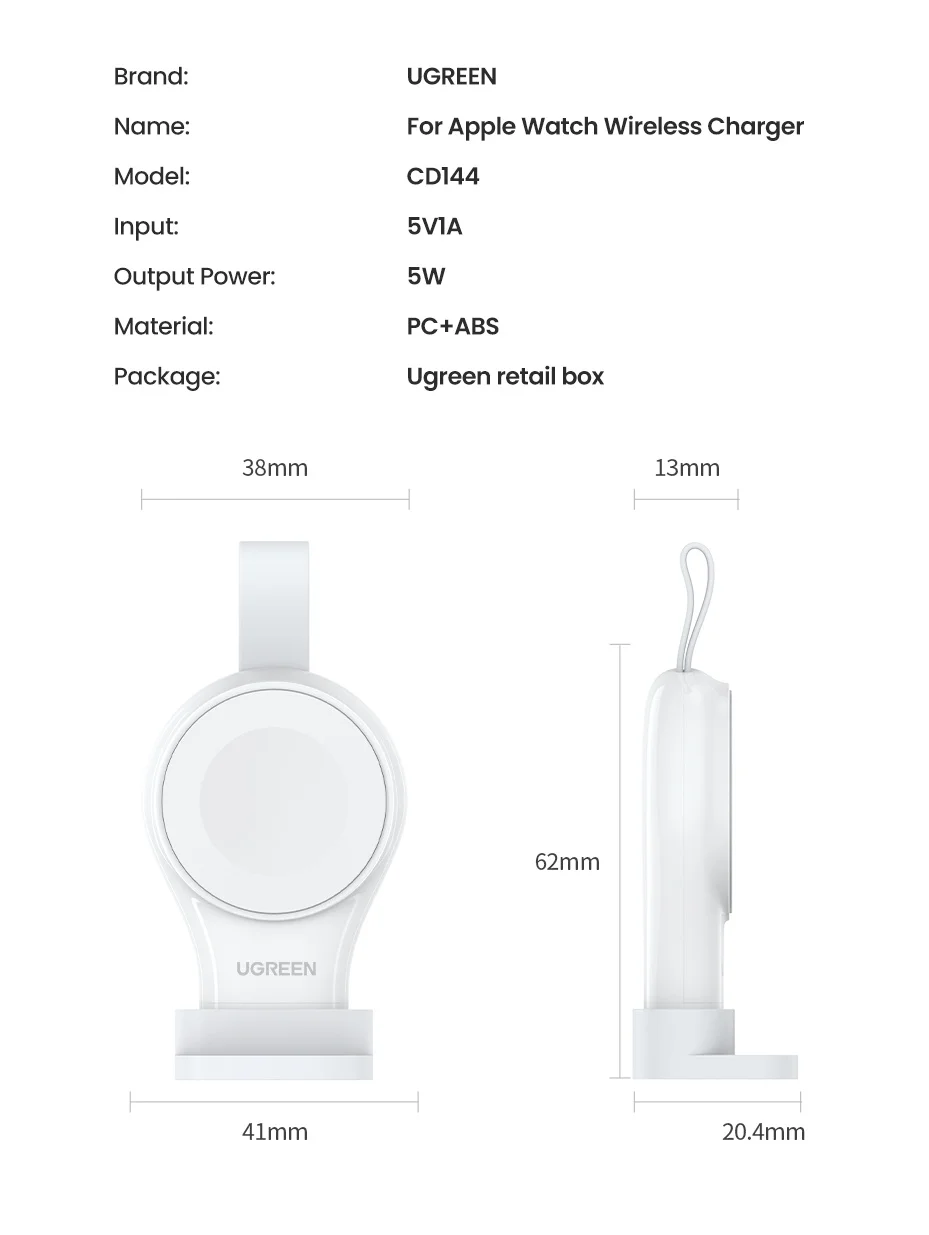 Comprar UGREEN-cargador inalámbrico MFi para Apple Watch, cargador rápido portátil USB tipo C magnético para Apple Watch Ultra 2 9 8 7 SE