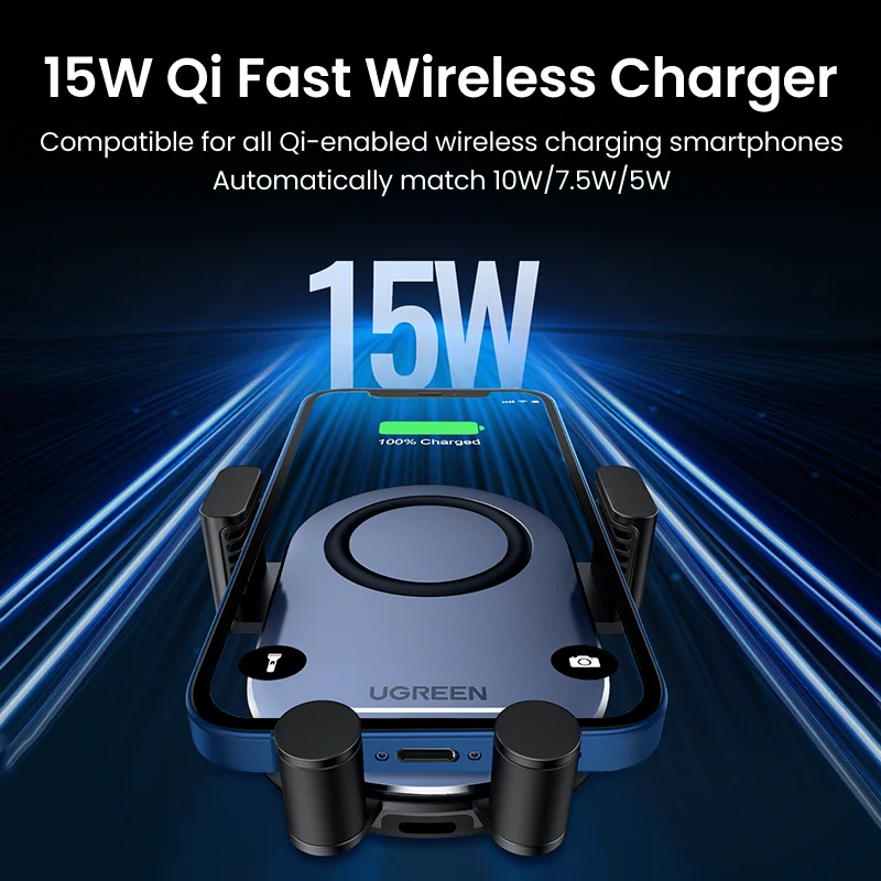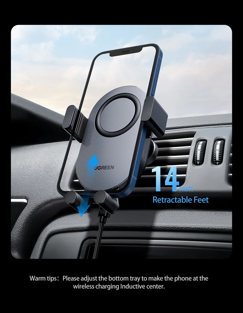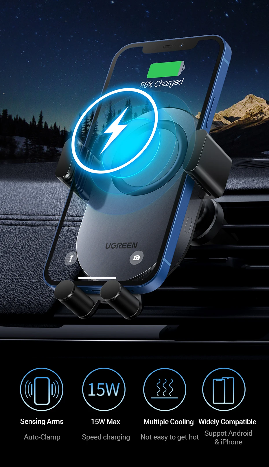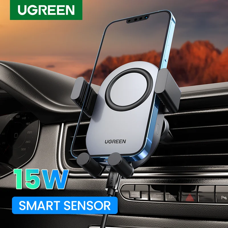 Comprar UGREEN-cargador inalámbrico Qi para coche, soporte de teléfono de inducción automática para iPhone 13, 12, 11, Xiaomi, Samsung S21, 15W