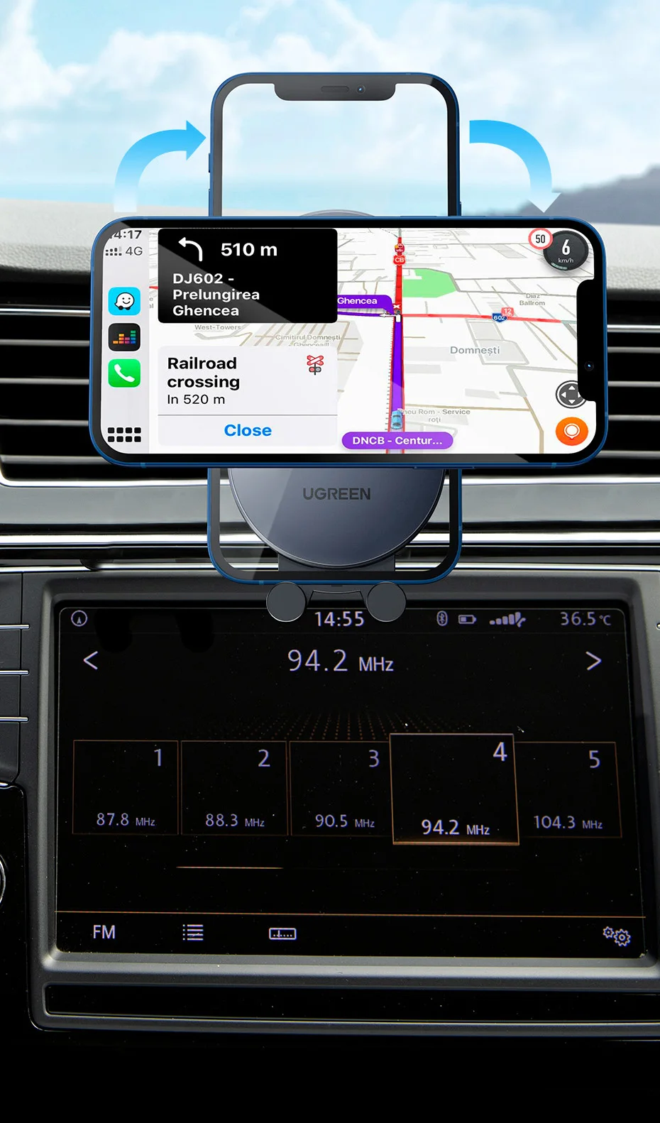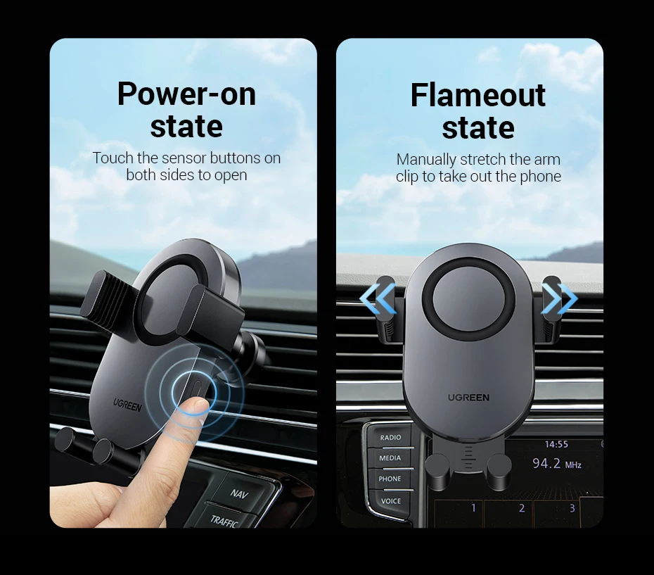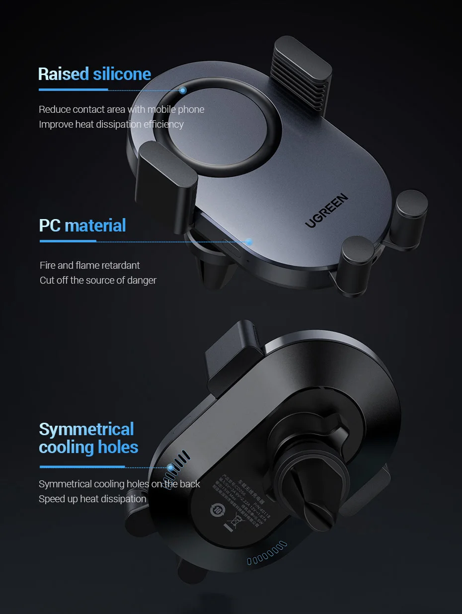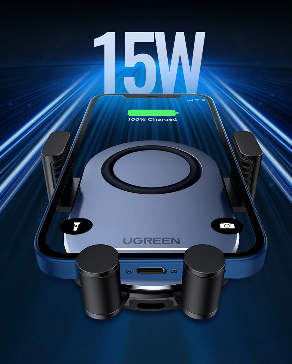 Comprar UGREEN-cargador inalámbrico Qi para coche, soporte de teléfono de inducción automática para iPhone 13, 12, 11, Xiaomi, Samsung S21, 15W
