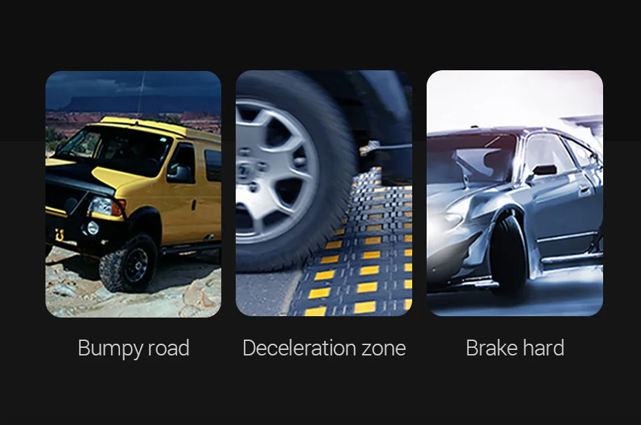 Para varias condiciones de carretera: Carretera con baches, zona de desaceleración, freno fuerte.