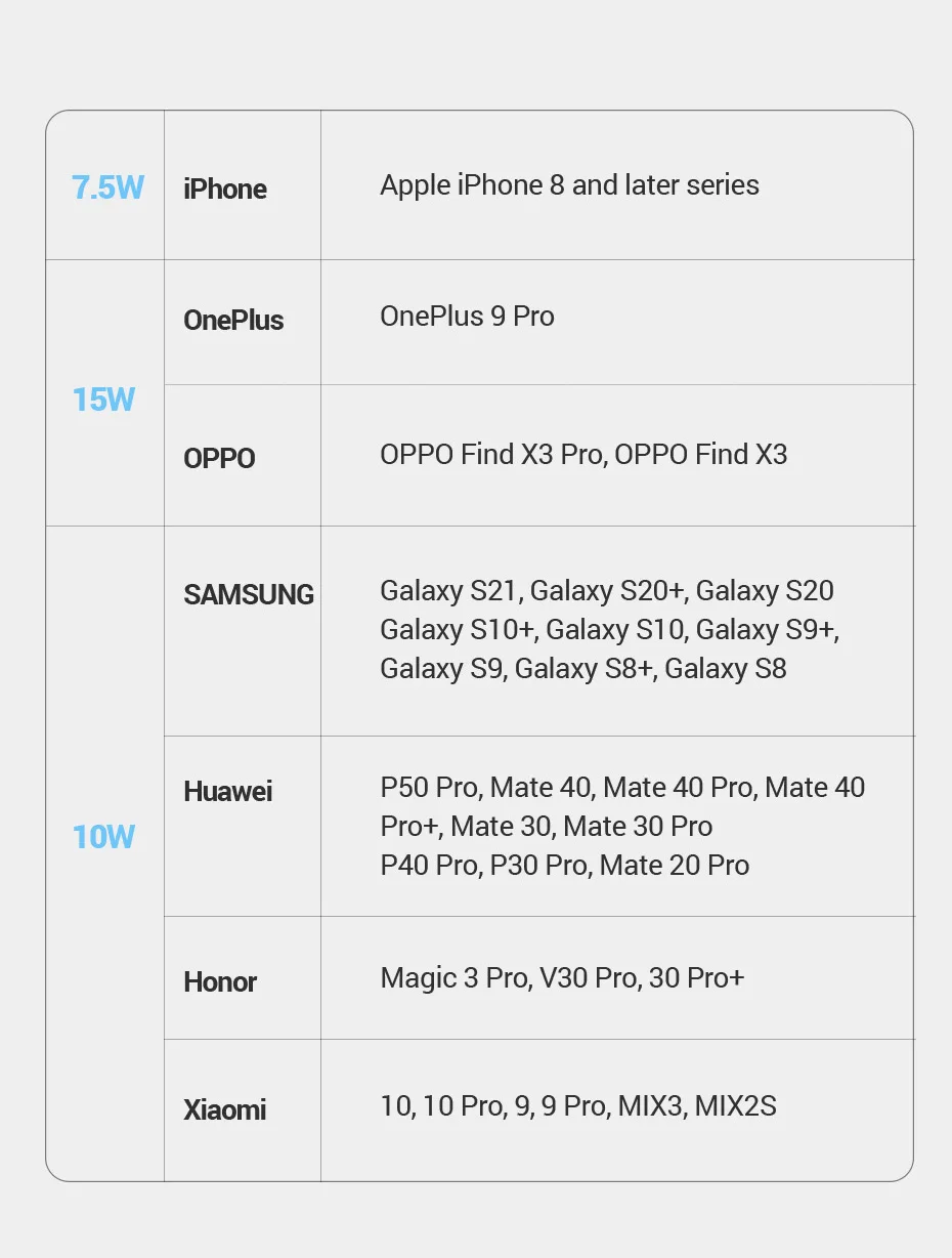 PD: Por favor, mantenga la carcasa gruesa ≤ 7mm para una mejor eficiencia de carga.