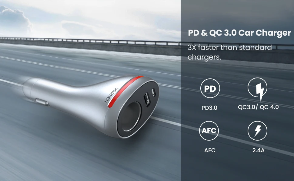 Comprar UGREEN-cargador rápido para coche, enchufe de encendedor de cigarrillos de 84W, QC PD 4,0 3,0, USB tipo C, para iPhone 14, 13, 12 Pro, Xiaomi