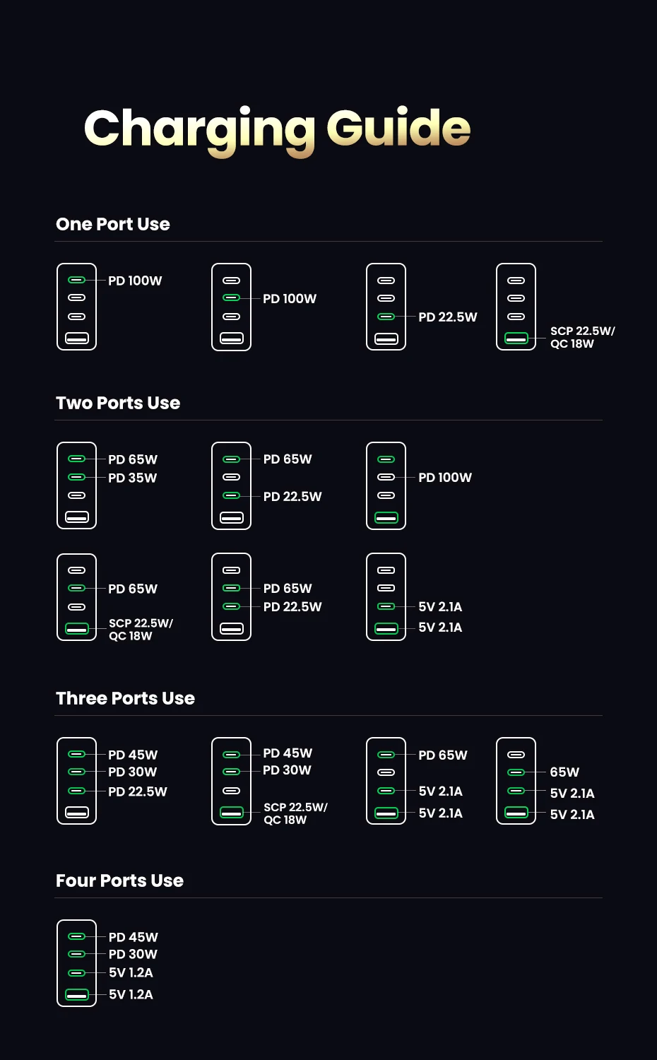UGREEN-cargador rápido para teléfono, tableta, Macbook, GaN100W, 65W, 45W, 30W, 20W