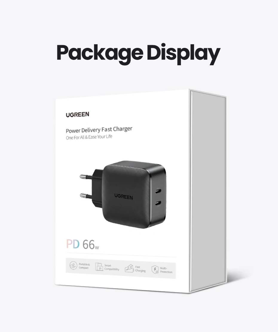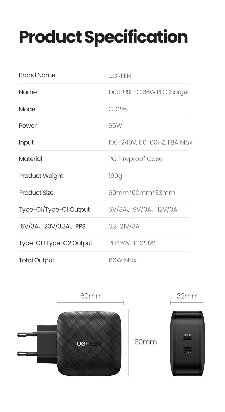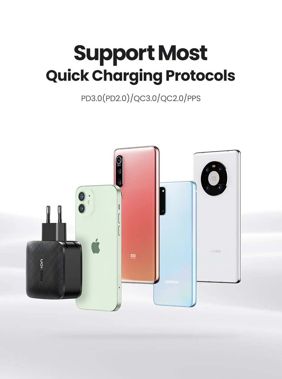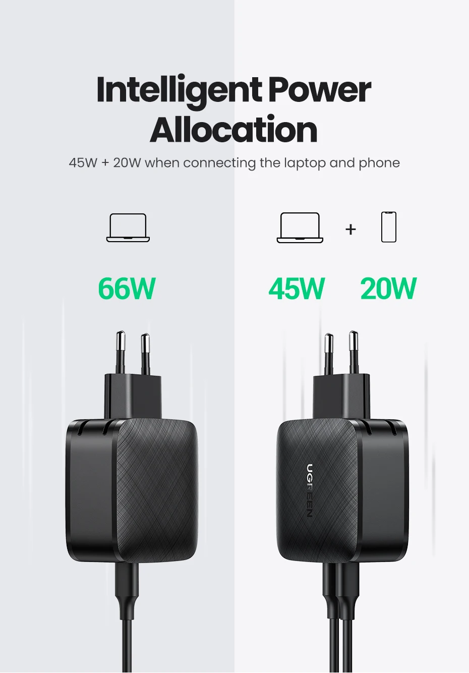 Comprar UGREEN-cargador USB tipo C de carga rápida para móvil, cargador portátil de 66W, PD, 4,0, 3,0, para iPhone 13, Xiaomi, Samsung y portátil