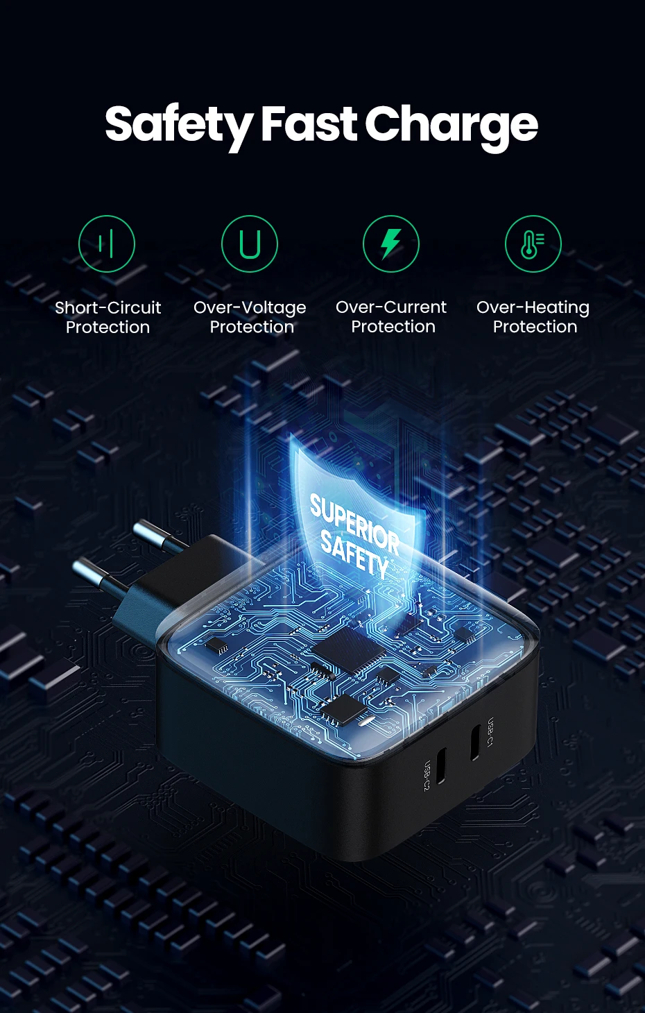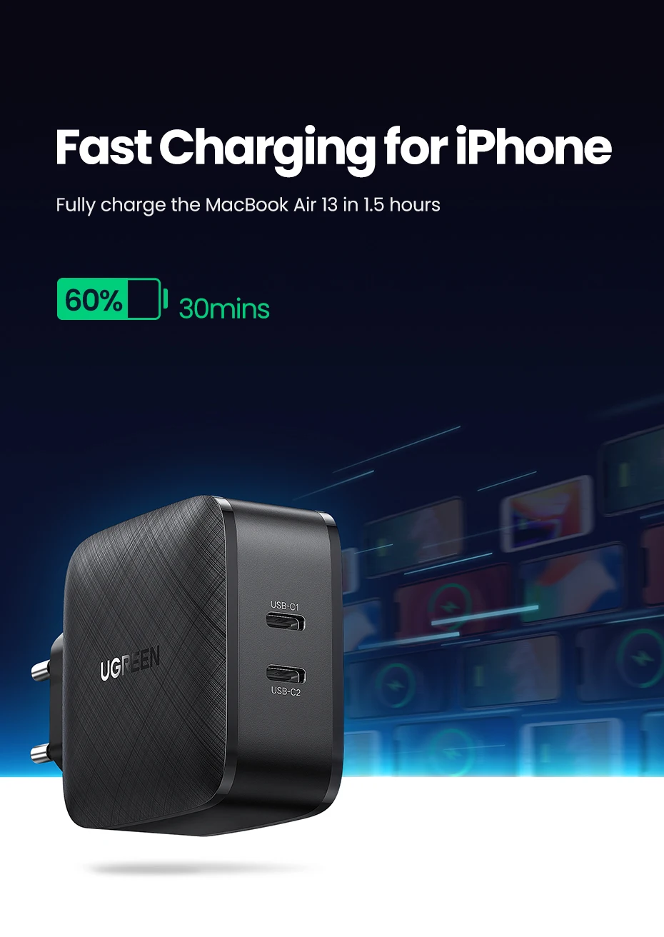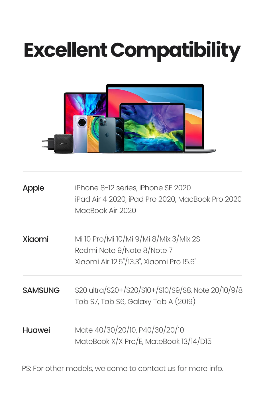 Comprar UGREEN-cargador USB tipo C de carga rápida para móvil, cargador portátil de 66W, PD, 4,0, 3,0, para iPhone 13, Xiaomi, Samsung y portátil