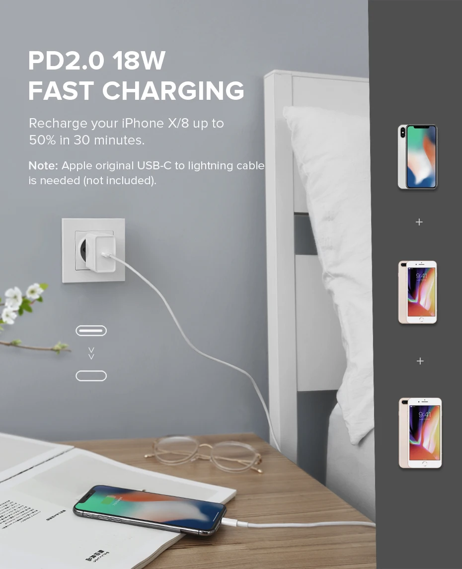 Comprar Ugreen-cargador USB tipo C para teléfono móvil, dispositivo de carga rápida portátil de 18W, compatible con iPhone 14, 13 Pro Max, Apple, Xiaomi y Huawei