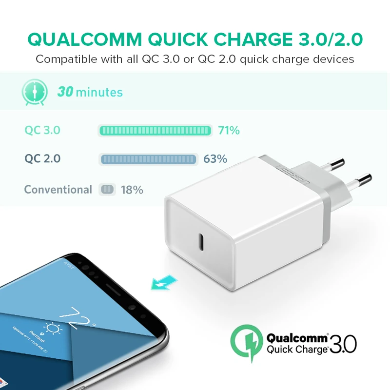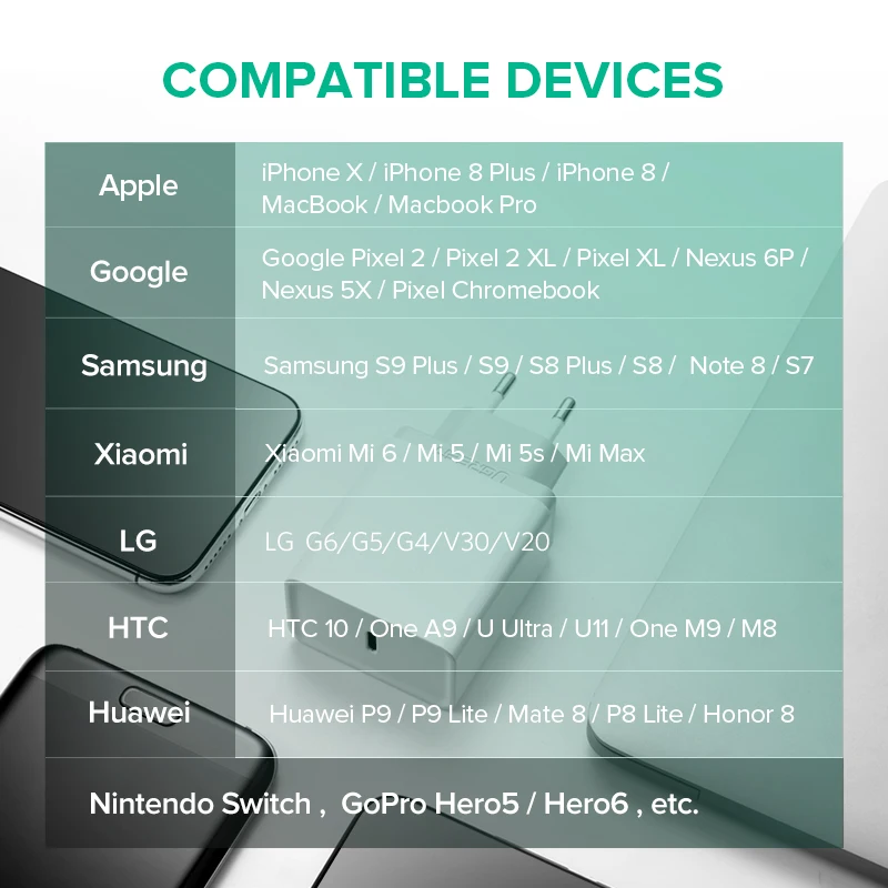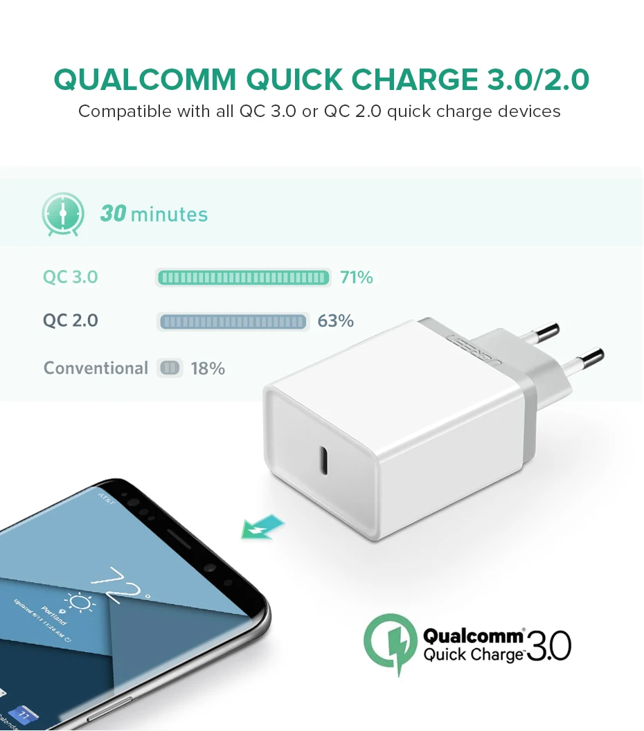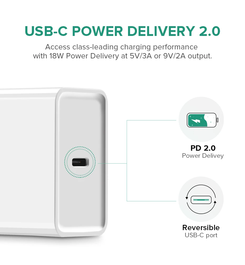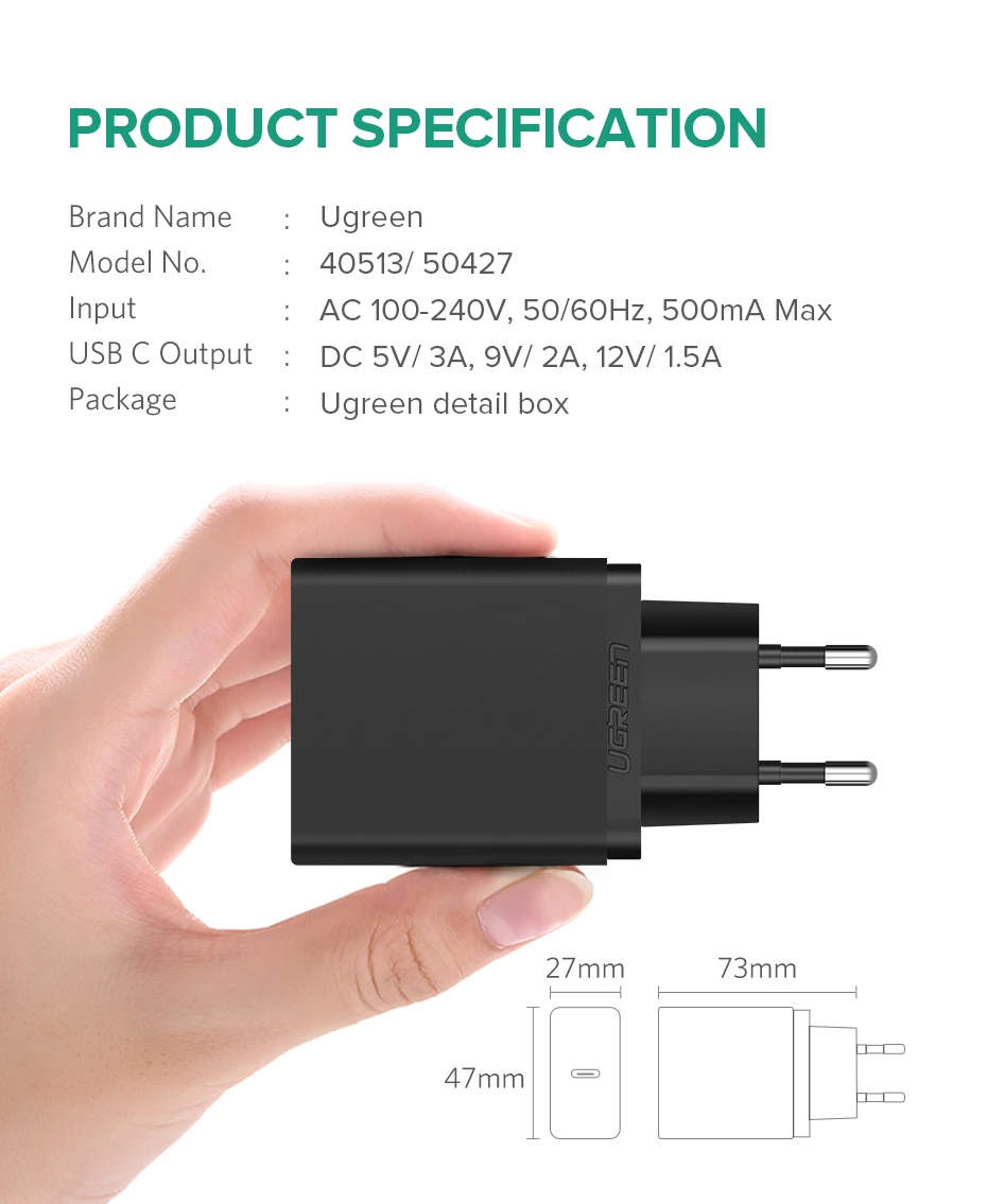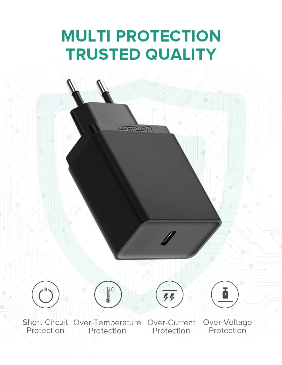 Ugreen-cargador USB tipo C para teléfono móvil, dispositivo de carga rápida portátil de 18W, compatible con iPhone 14, 13 Pro Max, Apple, Xiaomi y Huawei