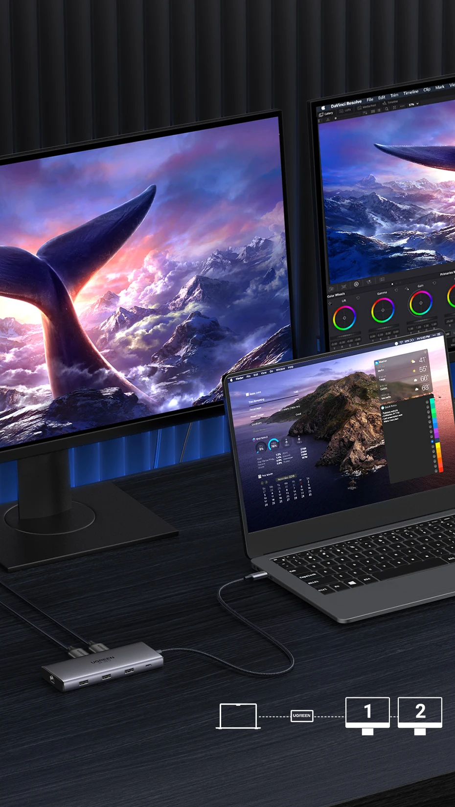 Convierte un dispositivo USB C en un potente espacio de trabajo.Estás listo para crear, codificar y colaborar.