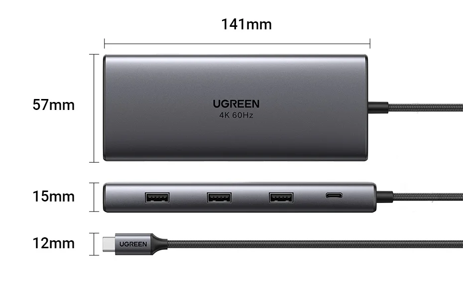 Comprar UGREEN-concentrador de red USB tipo C a HDMI, RJ45, Ethernet, PD100W, 10gbps, 4K60Hz, para MacBook, iPad, Huawei, Samsung, PC, tableta, teléfono, USB 3,0