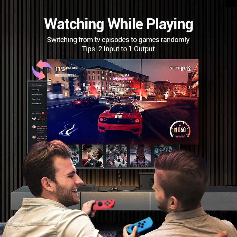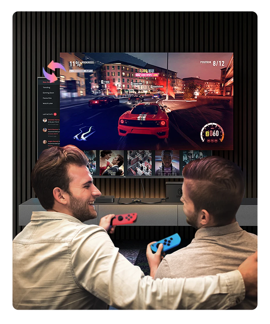 Cambie rápidamente entre TV y juegos en la pantalla