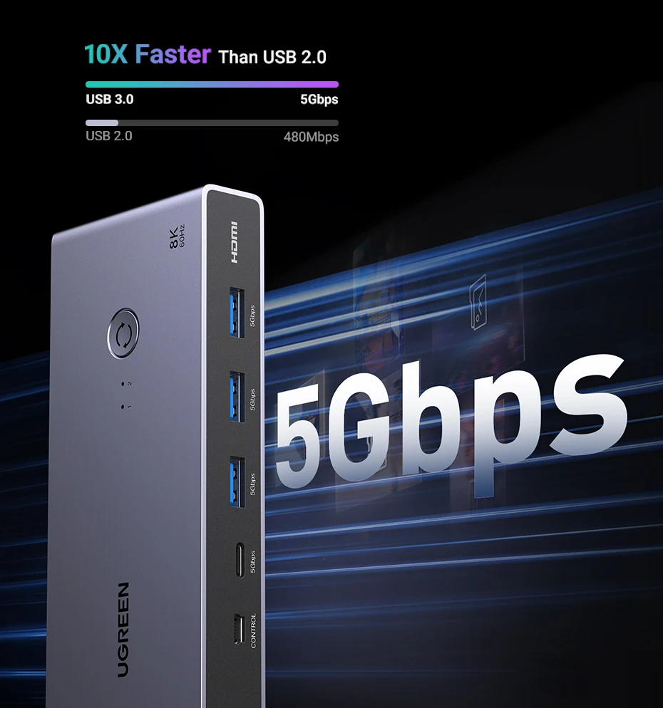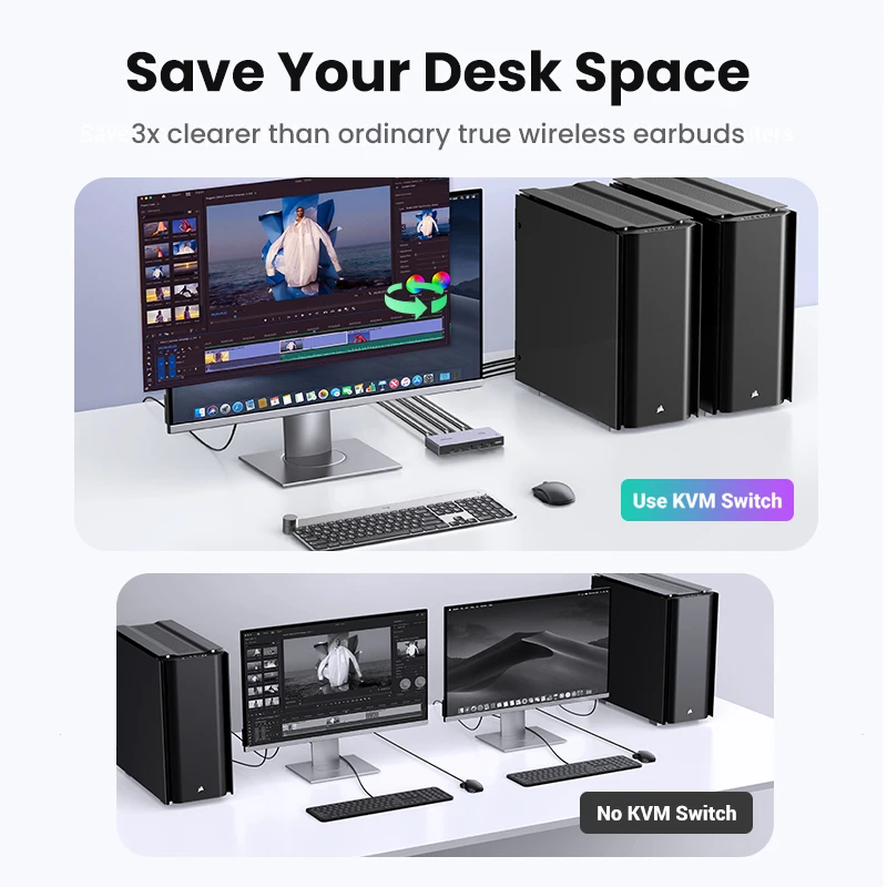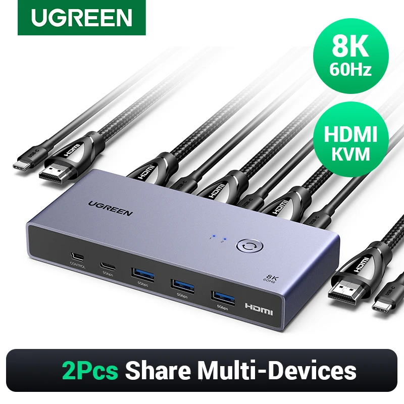 Comprar UGREEN-conmutador KVM 8K 60Hz HDMI, USB C, USB 3,0, 2 piezas, compartir 1 Monitor, impresora, teclado, ratón, 3D ,HDR Vision