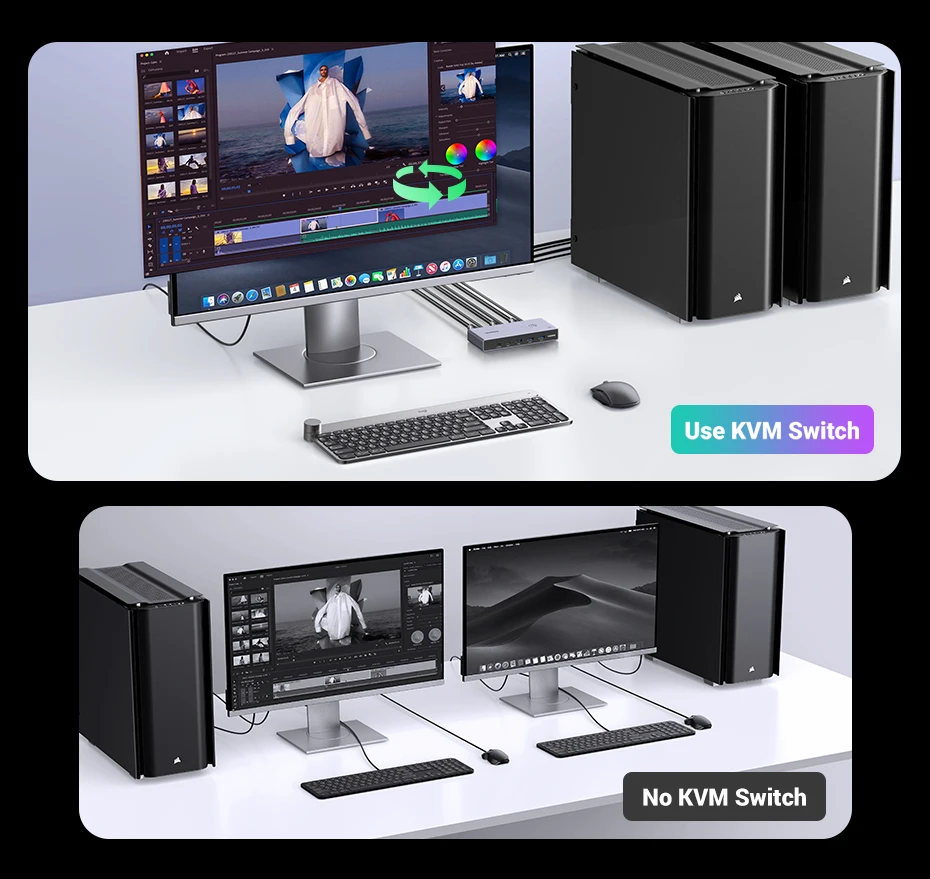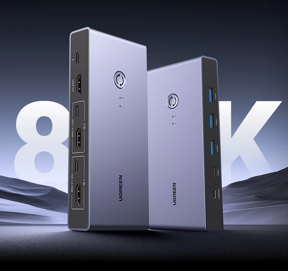Comprar UGREEN-conmutador KVM 8K 60Hz HDMI, USB C, USB 3,0, 2 piezas, compartir 1 Monitor, impresora, teclado, ratón, 3D ,HDR Vision