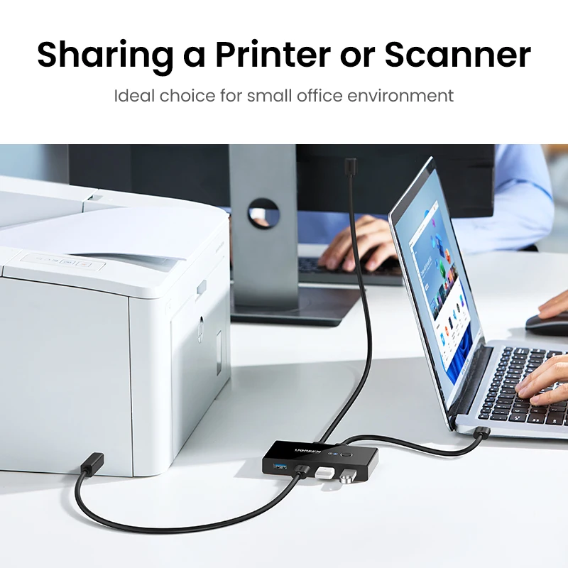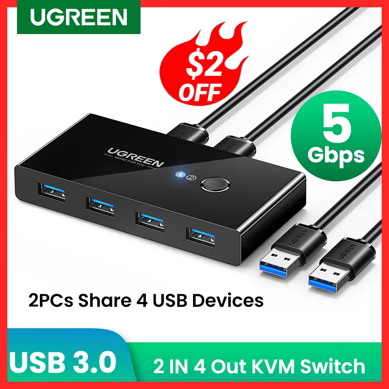 Comprar Ugreen-conmutador USB KVM interruptor USB 3,0 2,0, interruptor KVM para Windows 10, PC, teclado, ratón, impresora, 2 uds., compartir 4 dispositivos, interruptor USB