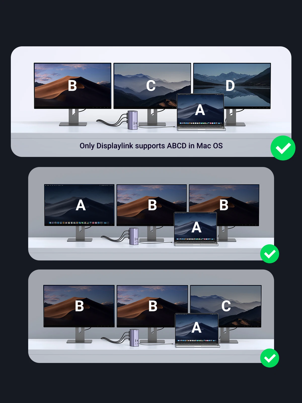 Feture : DisplayLink Technology---Realize triple display "ABCD" Extended Mode both on MacOS & Windows