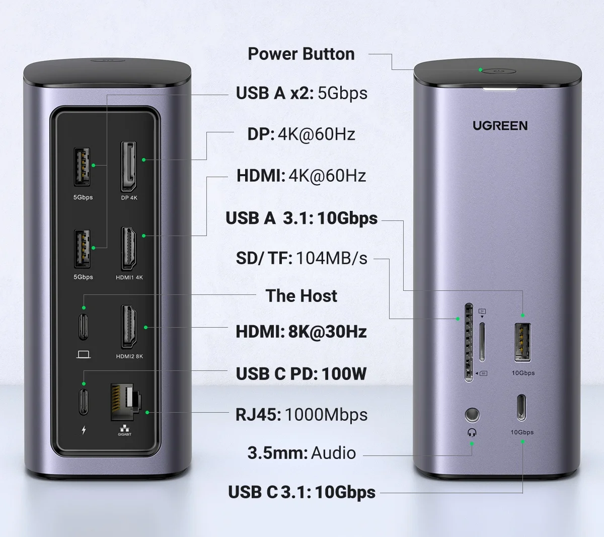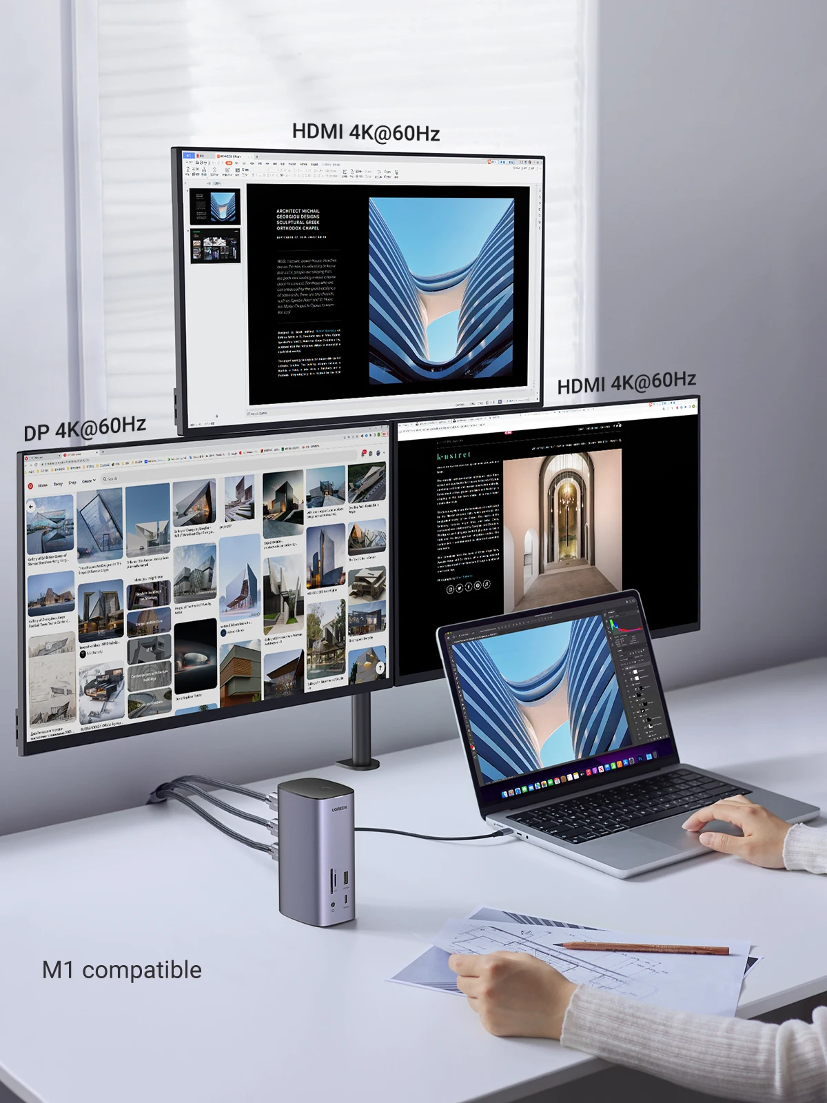 Comprar UGREEN-estación de acoplamiento 12 en 1, USB C a 8K, HDMI, DisplayPort "ABCD", Triple pantalla, RJ45, PD100W, para Mac OS M1, 10G, USB 3,1, HUB