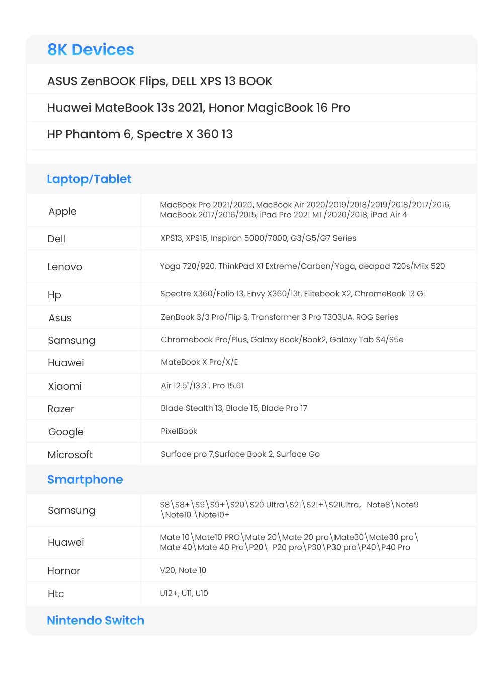 ◆ 1xHDMI 8K @ 30Hz:7680*4320 a 30Hz,3840*2160 a 120Hz,1920*1080 a 240Hz